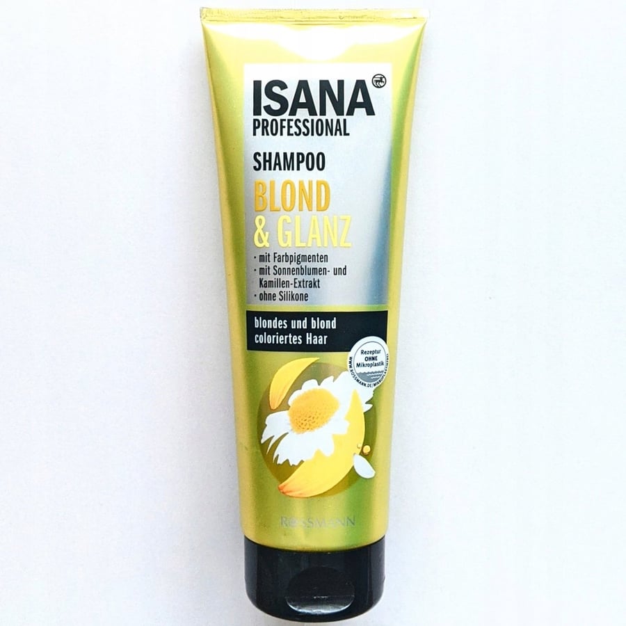 Шампунь для светлых и окрашенных светлых волос. Придает блеск светлым волосам. Содержит красящий пигмент и экстракты подсолнечника и ромашки. Не содержит микропластика.