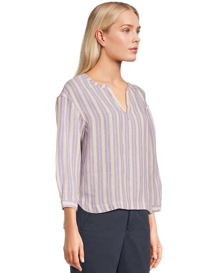 Рубашка L.L.Bean Premium Washable Linen Shirt Split-Neck Stripe, цвет Arctic Violet Stripe