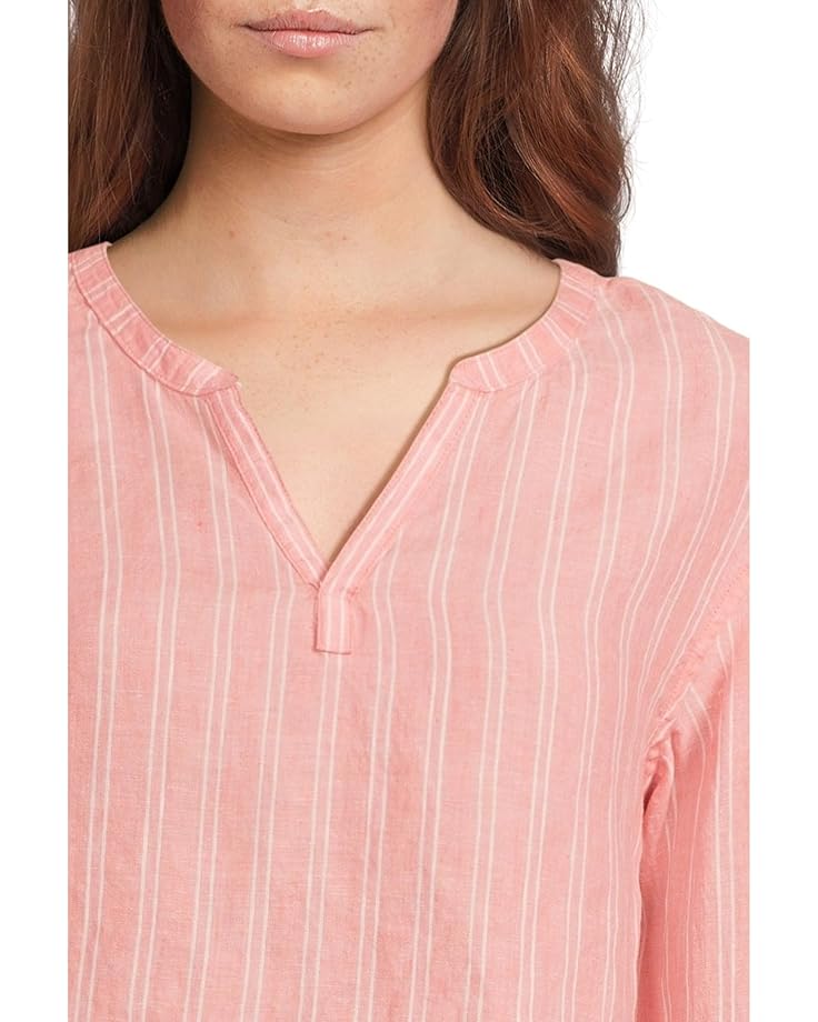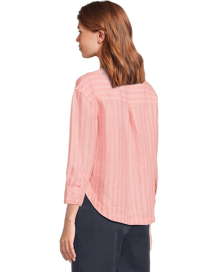 Рубашка L.L.Bean Premium Washable Linen Shirt Split-Neck Stripe, цвет Dark Salmon Stripe