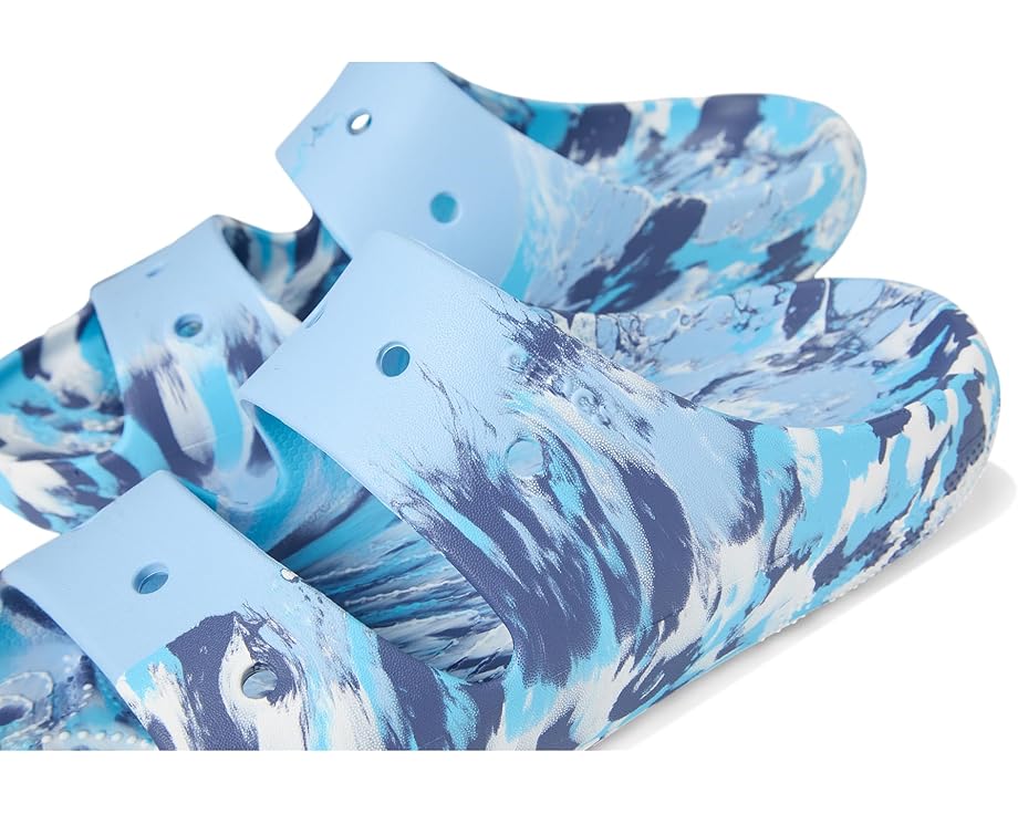 Отдыхаете ли вы дома или сидите у бассейна, делайте это с комфортом в классических мраморных сандалиях Crocs. Эти туфли без застежек имеют открытый носок с двойными ремешками, изготовлены из этиленвинилацетата и подошвы.