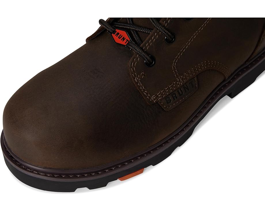 BRUNT The Sullivan 6" WP Comp — это универсальные и прочные повседневные рабочие ботинки, разработанные с фирменной системой комфорта BRUNT. Они изготовлены из устойчивой к условиям скотного двора кожи, полученной от американских быков, и оснащены улучшенной резиновой подошвой, которая устойчива к скольжению, воздействию масел и высоких температур до 572 °F. Sullivan также обеспечивает дополнительную устойчивость и сцепление с пяткой под углом 90° для преодоления лестниц и лесов, а также более глубокими выступами.