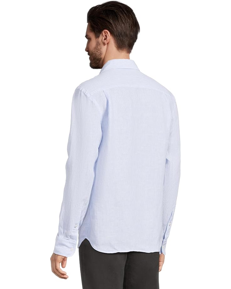 Естественно дышащая рубашка Faherty Laguna Linen Shirt с естественной текстурой воплощает в себе неподвластный времени стиль для теплой погоды. Прохладная и легкая, эта рубашка на пуговицах изготовлена из европейского льна, специально выстиранного для невероятной мягкости. Идеально подходит для всего: свадьбы, работы, свидания, чего угодно. Имеет воротник-стойку, длинные рукава с манжетами на пуговицах и изогнутый подол.