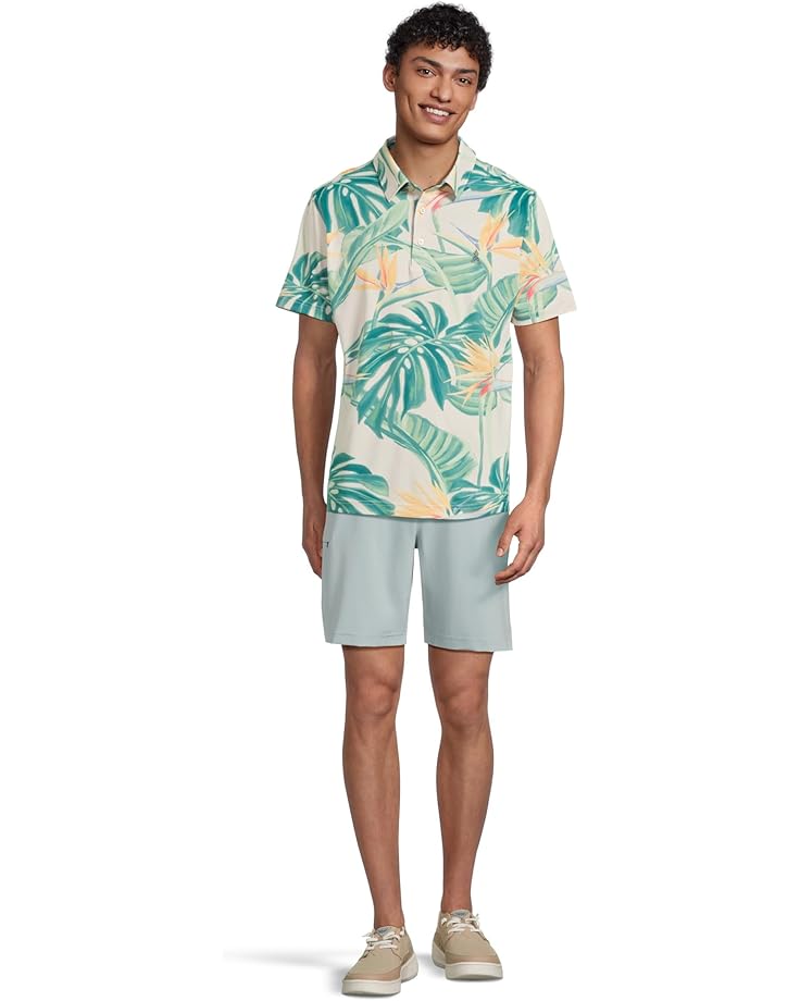 Готовое к каждому взмаху и прогулке, поло Frond Of You от Chubbies дарит прохладу и производительность профессионального уровня. Изготовленное из ультра-дышащей эластичной ткани, оно движется вместе с вами и сохраняет прохладу даже при давлении. Благодаря классическому крою, структурированному воротнику и классической планке с тремя пуговицами оно выглядит стильно, не прилагая особых усилий. Легкий, не мнется дизайн дополнен игривым принтом в виде листьев и фирменным логотипом Chubbies на груди.