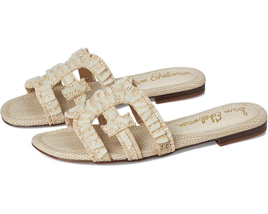 Шлепанцы Sam Edelman Bay Stone — это шик для теплой погоды. Универсальные и легко сочетаемые, они отлично смотрятся, будь то день у бассейна или обед с друзьями. Эти шлепанцы сделаны из полиуретанового верха, кожаной стельки и полиуретановой подкладки. Украшенные культовым логотипом с двумя буквами «E», эти плоские сандалии можно носить с обрезанными джинсами или простым струящимся сарафаном.