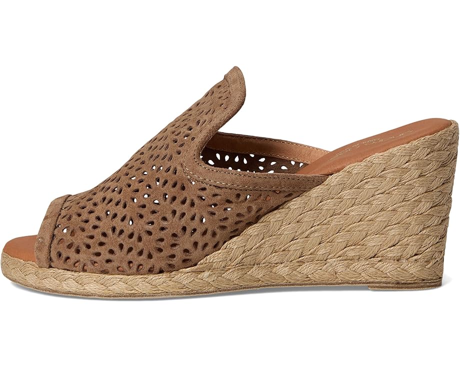 Сандалии Andre Assous Nissa имеют перфорированный замшевый верх и конструкцию slip-on. С каблуком-танкеткой, обернутым рафией, внутренняя часть отделана замшей для комфорта в течение всего дня.