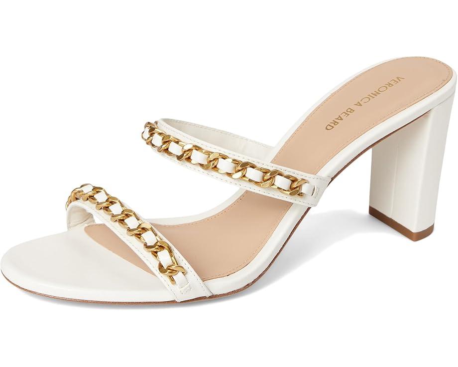 Сандалии Veronica Beard Gretchen, искусно изготовленные из кожи, представляют собой двухремешковые шлепанцы, украшенные золотыми звеньями цепи. Мягкая стелька и прочные блочные каблуки завершают образ. Эти босоножки на каблуке выполнены с кожаным верхом, стелькой и подкладкой. Добавьте шикарный вид к своим нарядам с этими туфлями на каблуке.