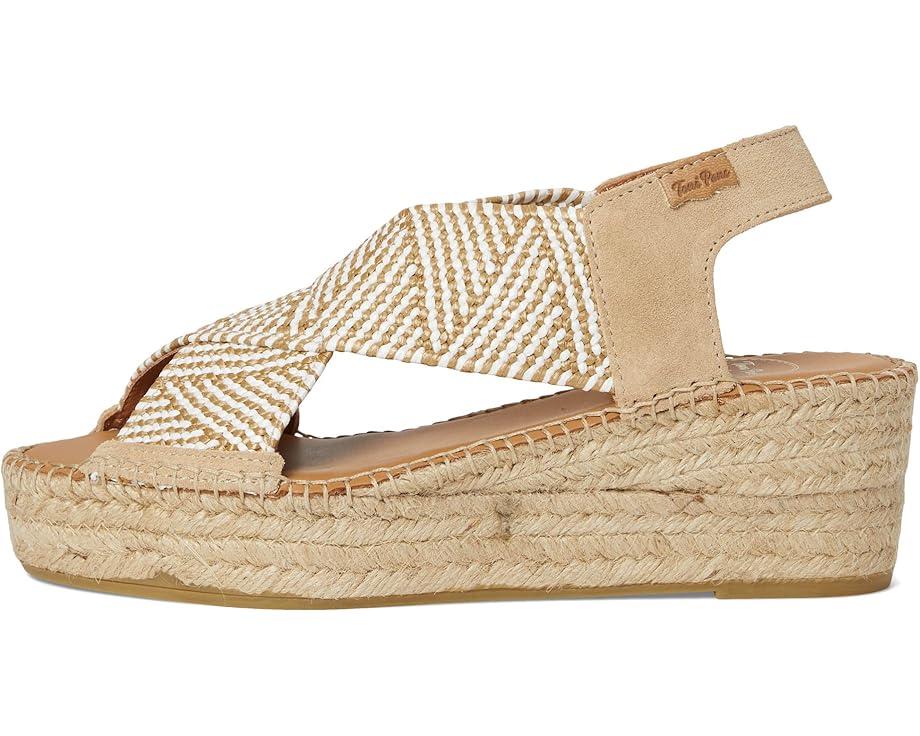 Сандалии Toni Pons Masai — это эспадрильи на танкетке с двухцветным верхом из тканого материала. Эти босоножки на каблуке легко надевать и снимать, они оснащены кожаной стелькой, джутовой подошвой и кожаной подкладкой. Сочетайте повседневные наряды и стильные платья с этими сандалиями-эспадрильями.