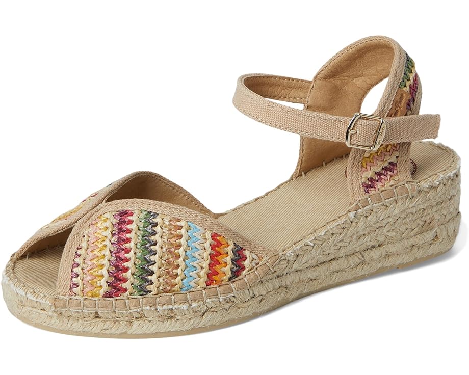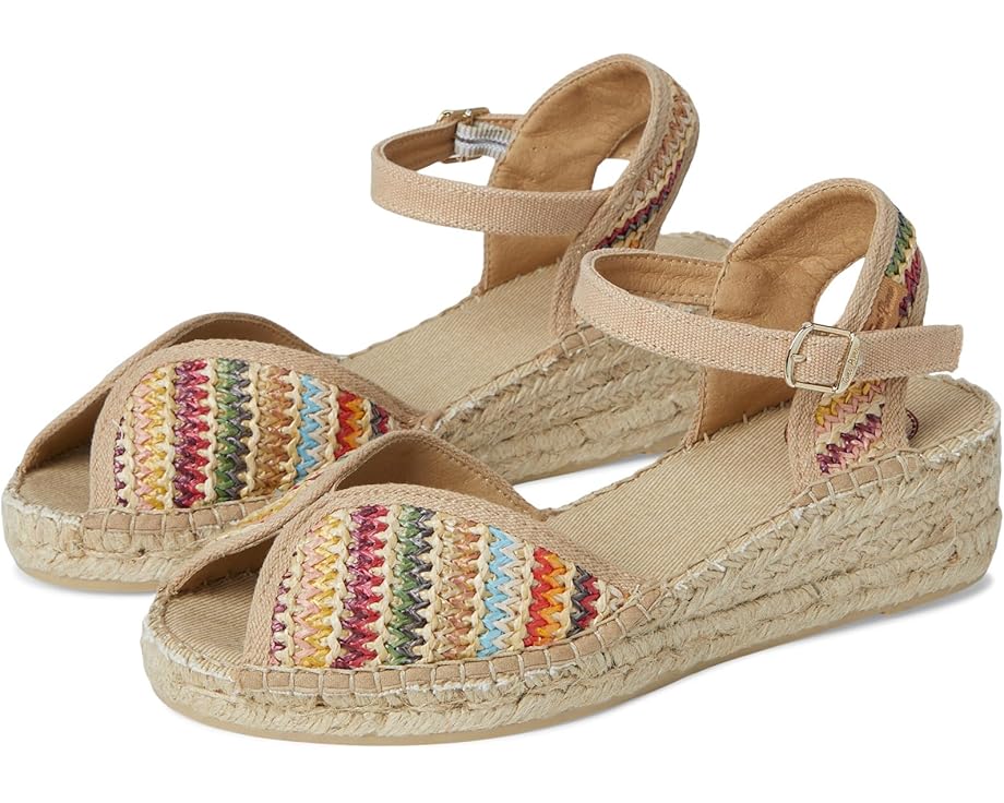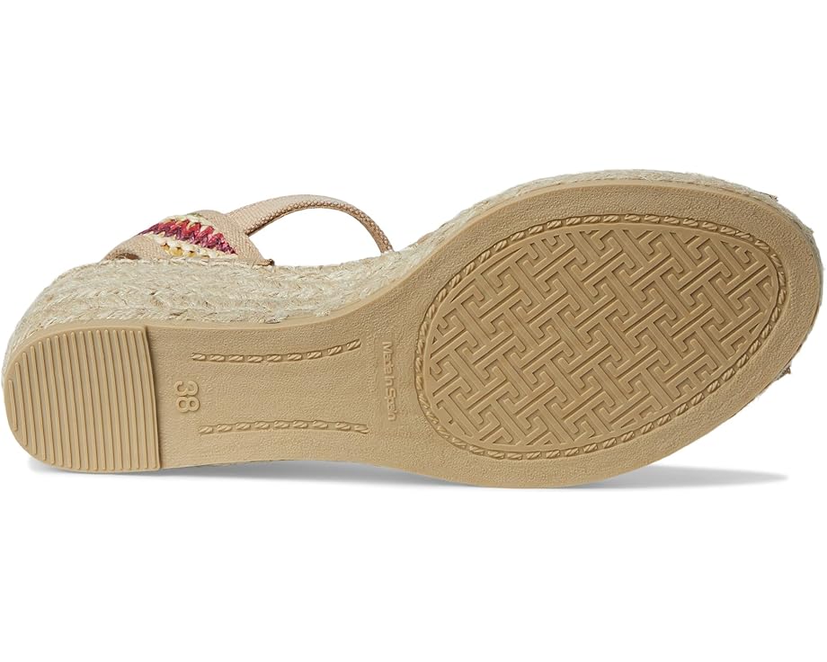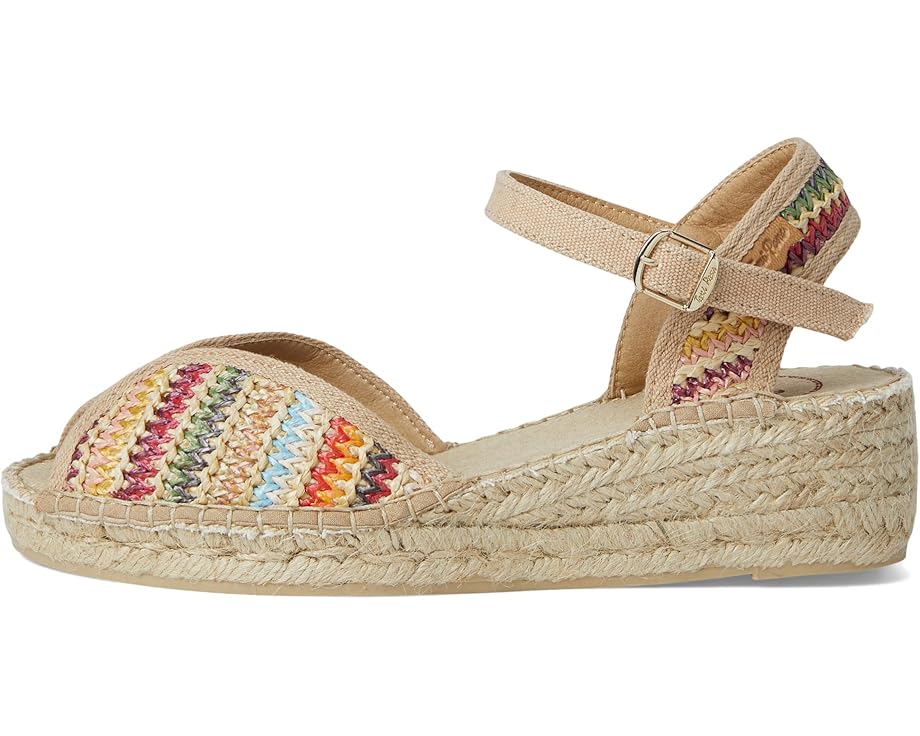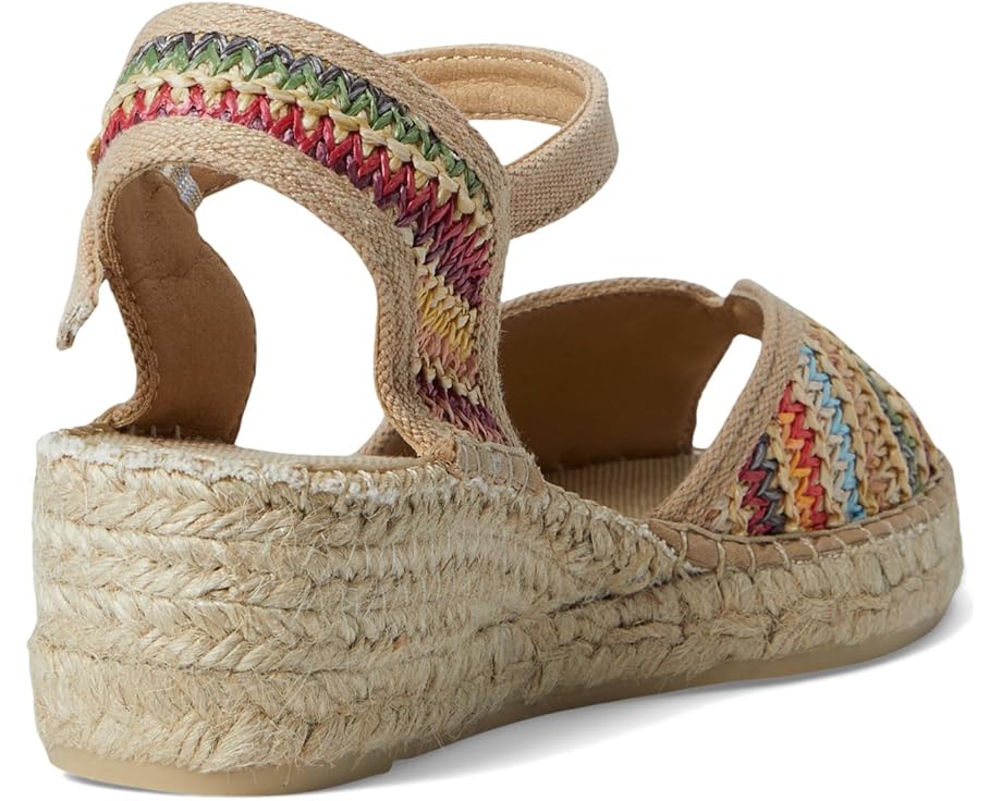 Сандалии Toni Pons Bella-Ma — это воплощение стиля. Изготовленные из резинового верха, хлопковой подкладки и стельки, эти сандалии имеют открытый носок, внешнюю танкетку из джута и резины, тканевое соединение и подошву вручную сшиты высококачественной хлопковой нитью, регулируемую застежку-ремешок и верх из разноцветного тканого материала.