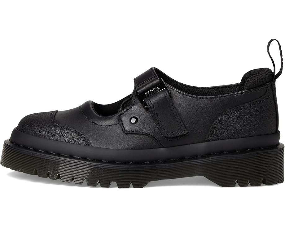 Dr. Martens Indica Elphie Mary Jane — это вариация на тему классики. Менее изящная и более в стиле Dr. Martens. Остроносые балетки из мягкой кожи Virginia, застегивающиеся на один ремешок и фирменную пряжку DM. Коническая подошва отмечена фирменным узором DM и закреплена желтой прострочкой.
