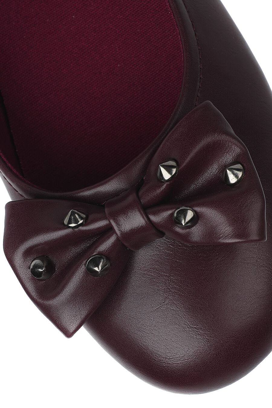 Темно-красные балетки с бантом и заклепками