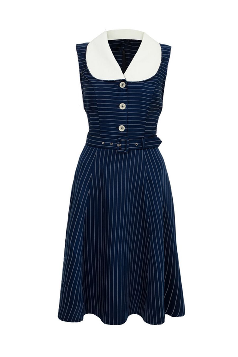 Платье средней длины Hell Bunny Costello Knee Dress, синий/белый