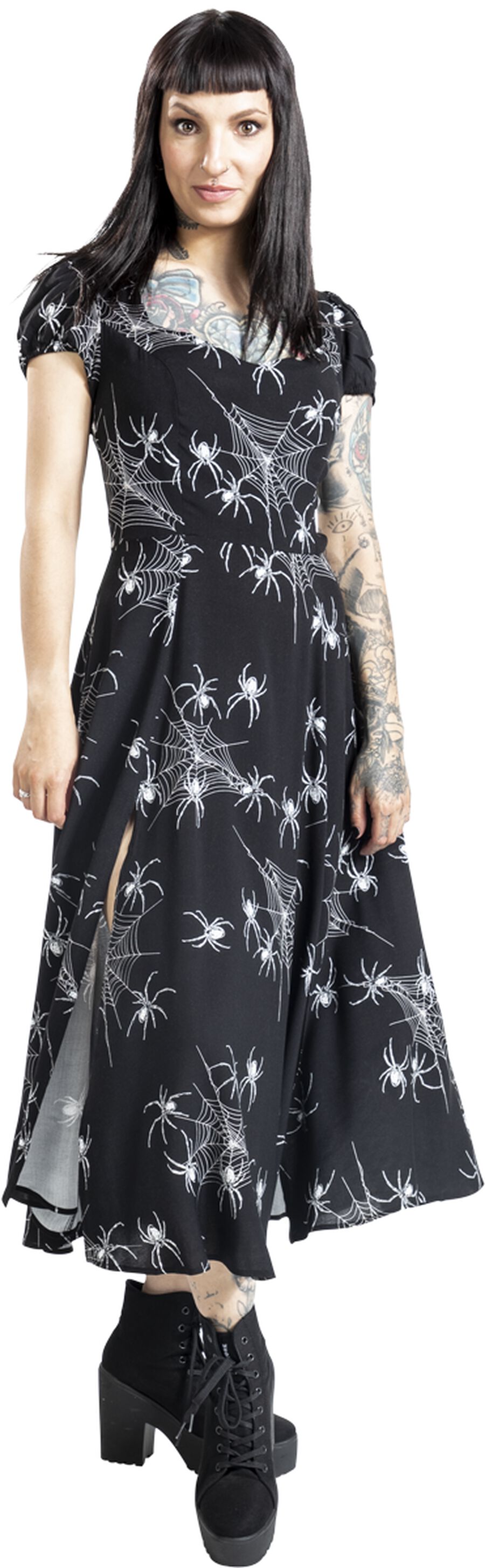 Платье средней длины Hell Bunny Grungy Spider Dress, черно-белый