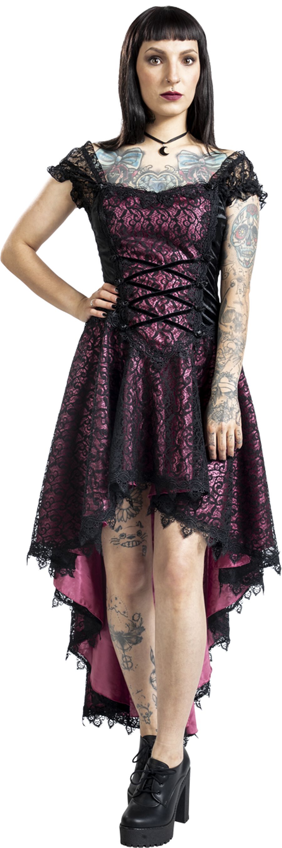 Платье средней длины Sinister Gothic Gothic Dress, черный/розовый