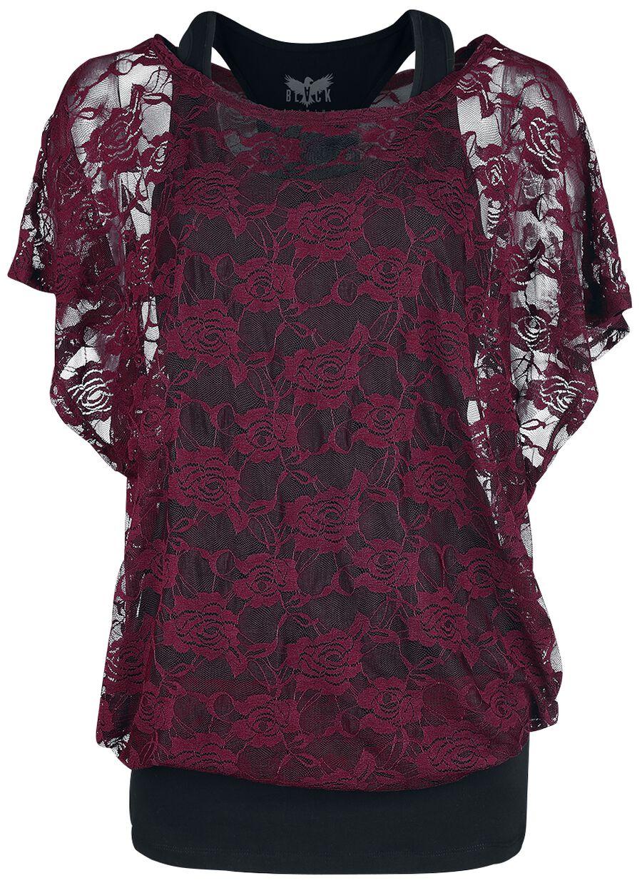 Бордовая кружевная рубашка с черным верхом