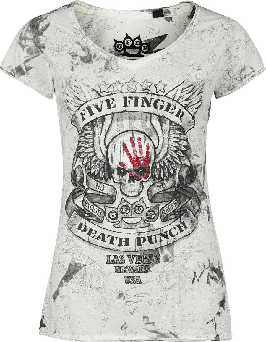 Футболка Five Finger Death Punch Skull, белый/серый