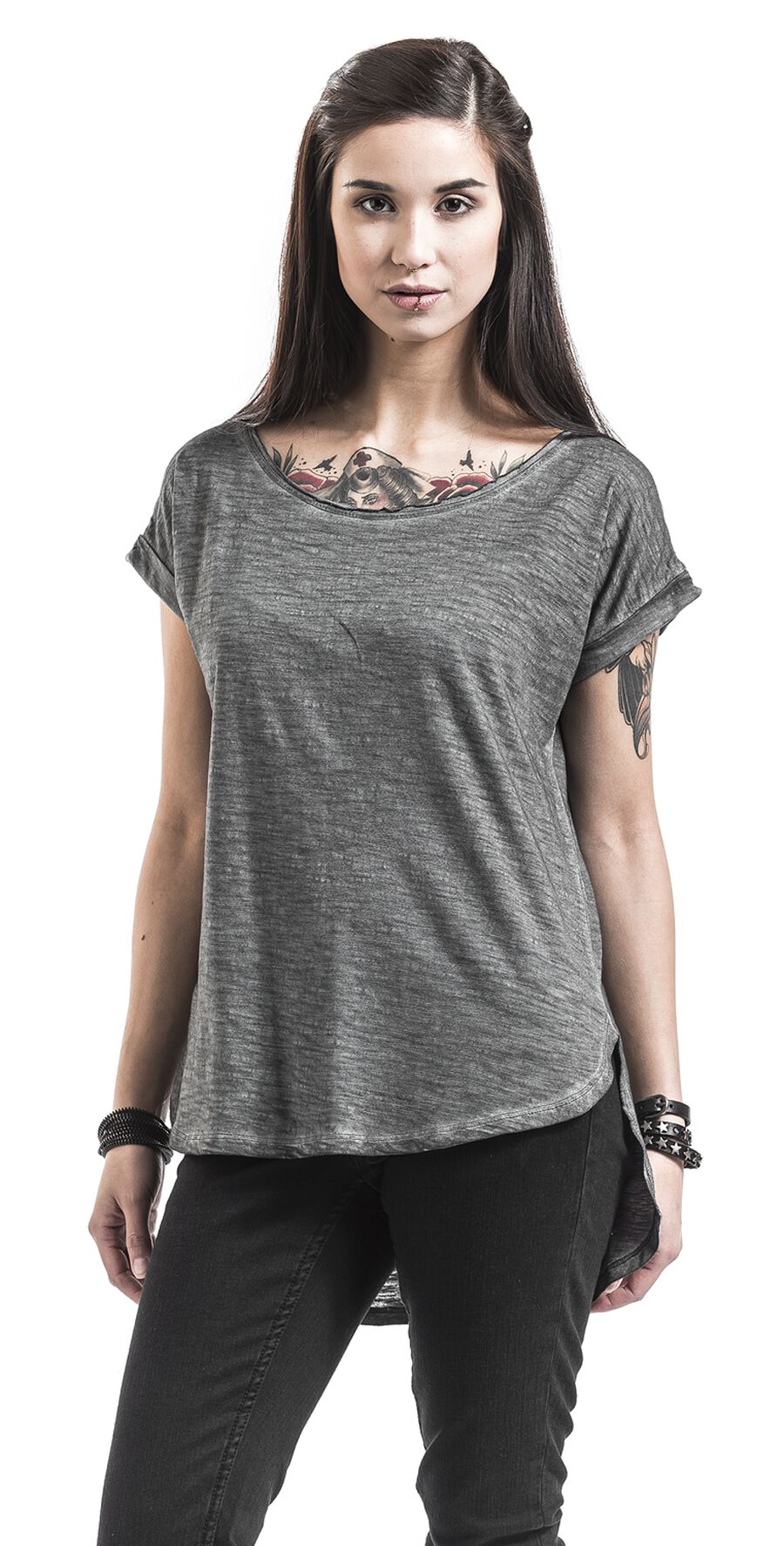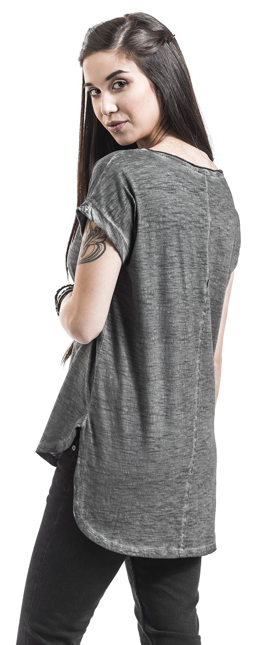 Футболка Urban Classics Ladies Long Back Shaped Spray Dye Tee, темно-серый
