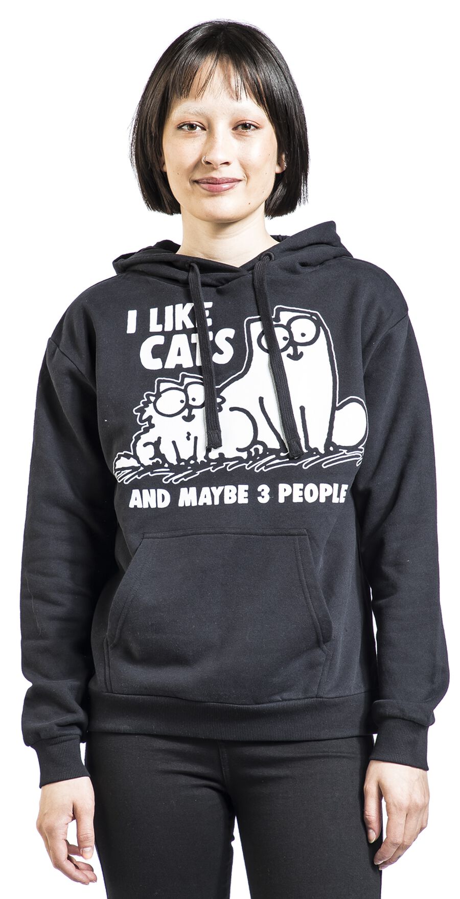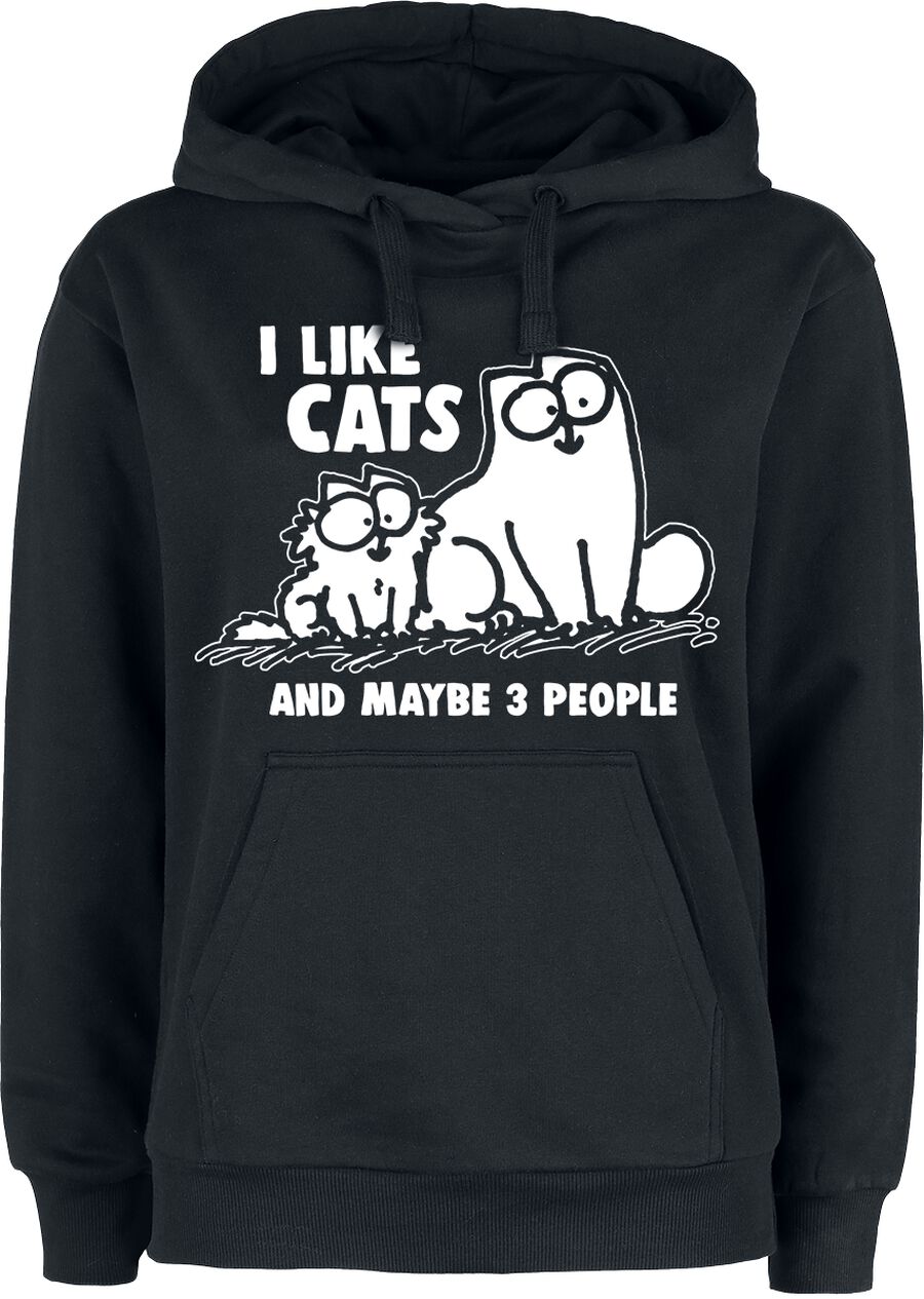 Толстовка с капюшоном Simon's Cat I Like Cats And Maybe 3 People, черный