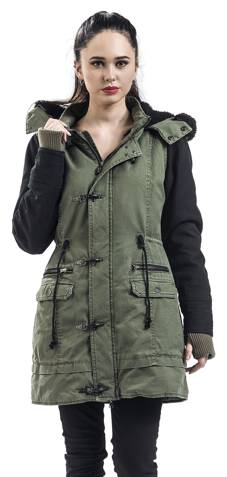 Зимняя куртка Rock Rebel by EMP, оливковый/черный