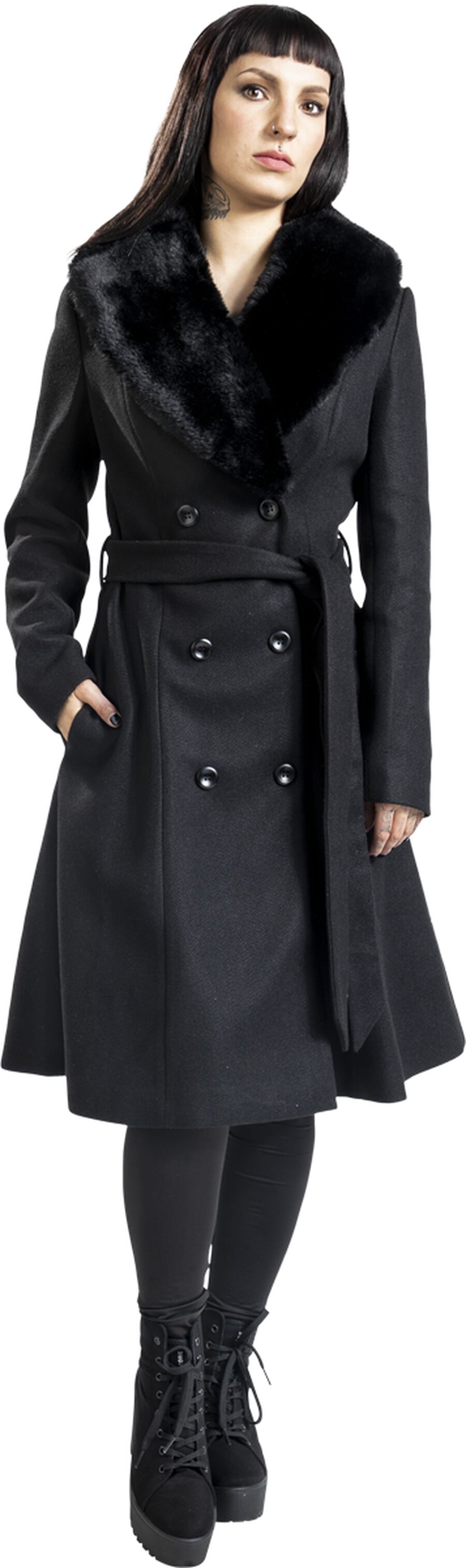 Пальто Voodoo Vixen Double Breasted Black Dress Coat, черный 21 576₽