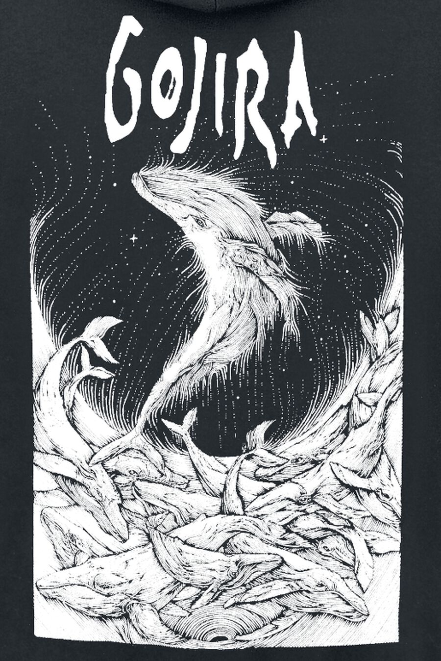 Толстовка с капюшоном Gojira Woodblock Whales, черный