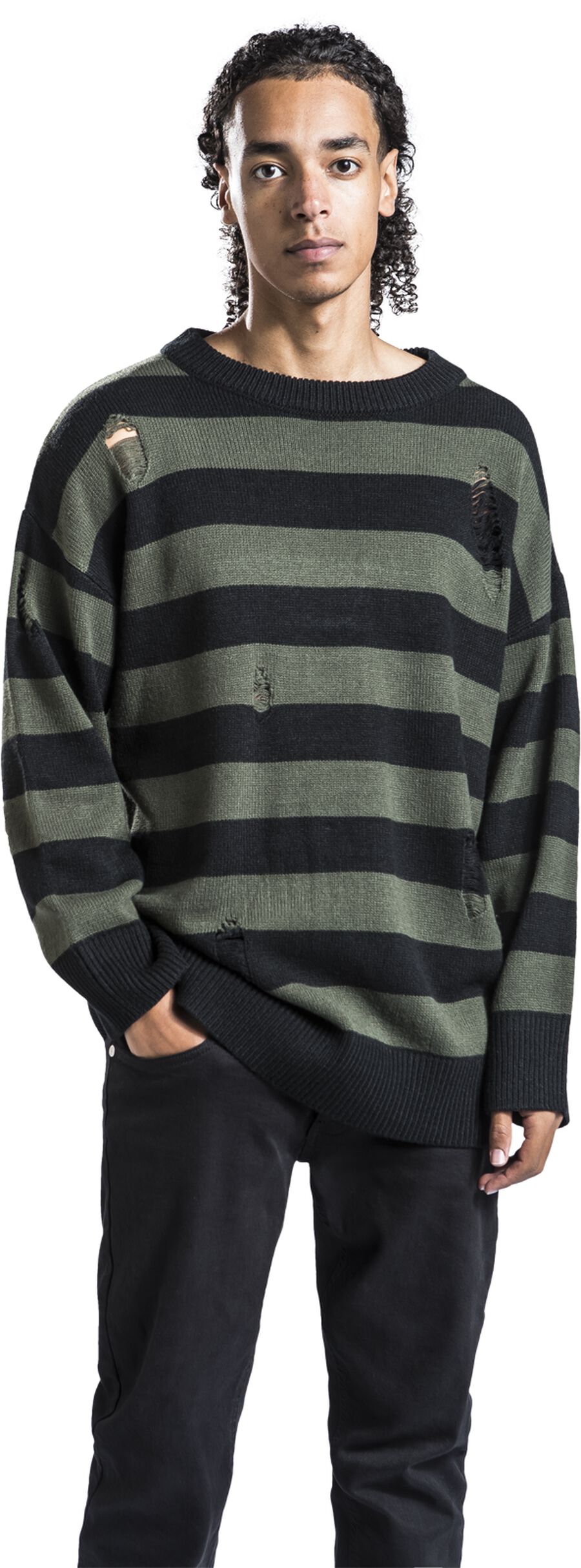 Вязаный свитер Banned Alternative Striped Knit Sweater, зеленый/черный