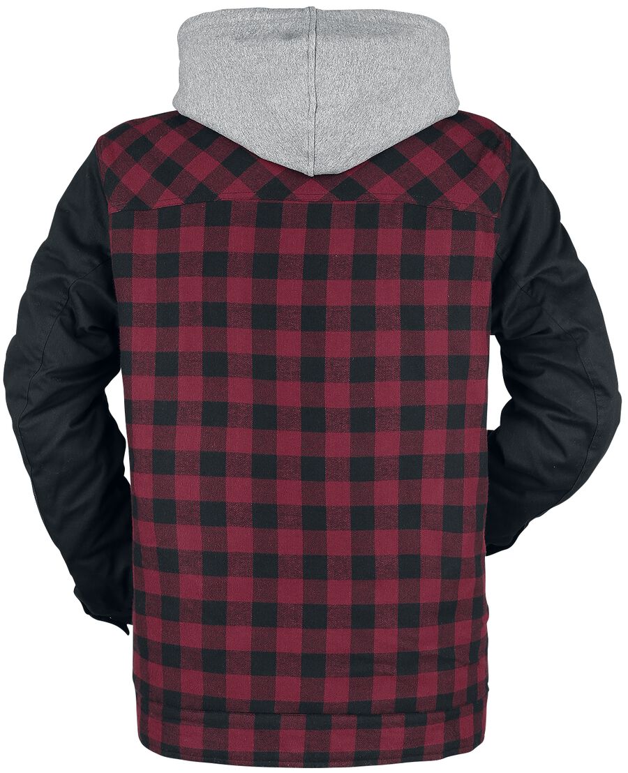 Черно-красная клетчатая куртка с черными рукавами