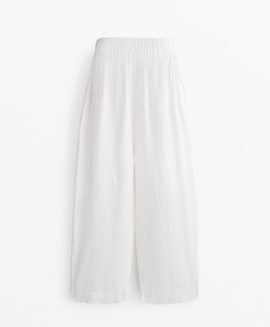 Укороченные брюки-баллоны из 100% льна Oysho, белый