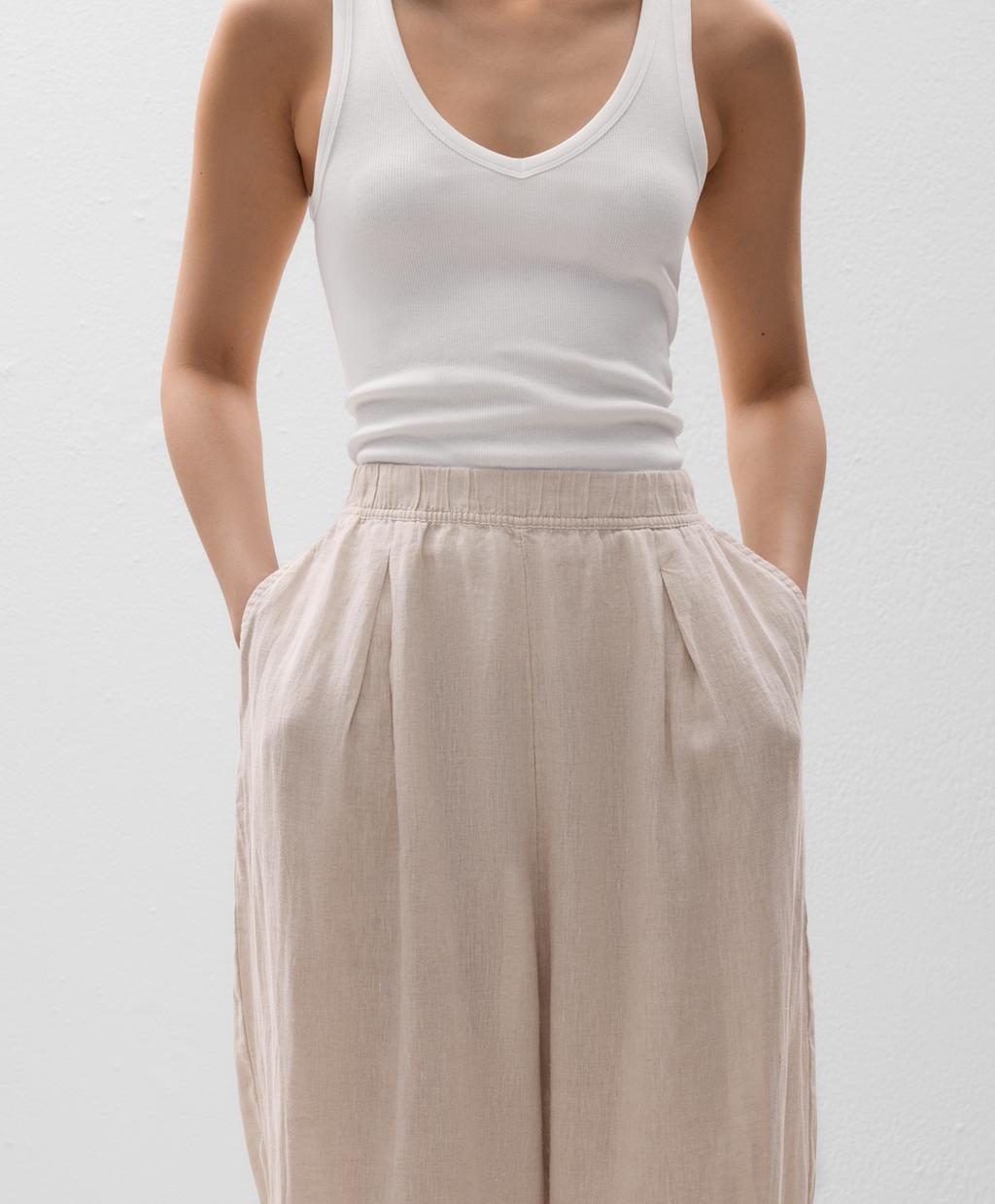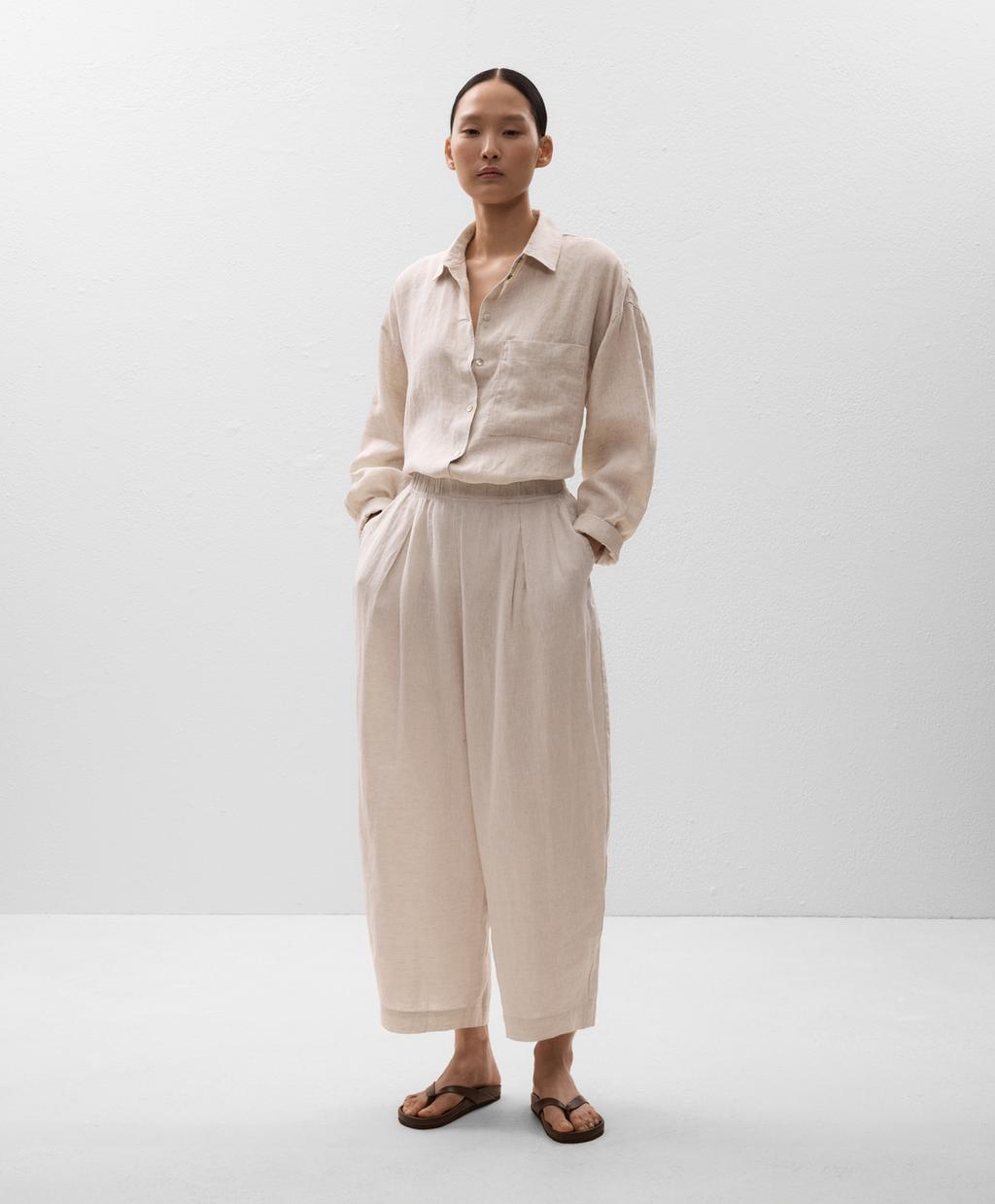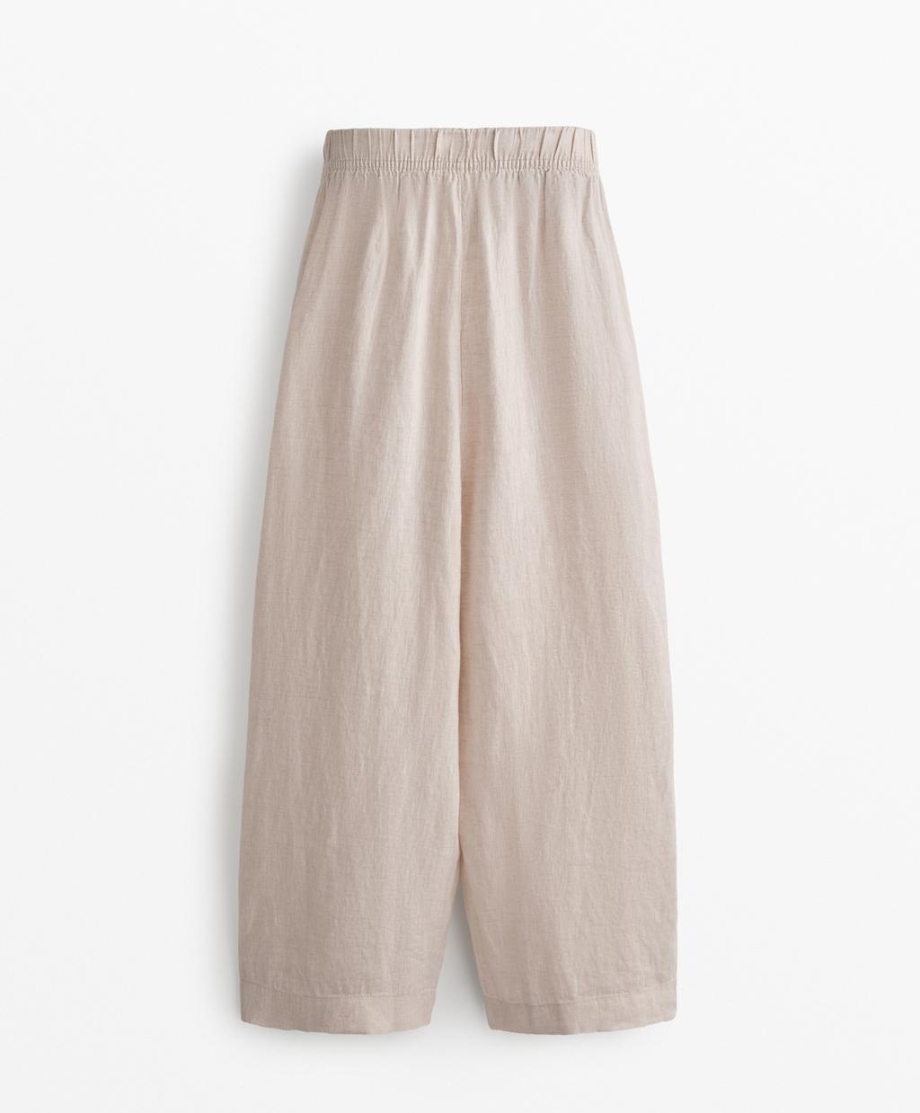 Укороченные брюки-баллоны из 100% льна Oysho, песочный меланж
