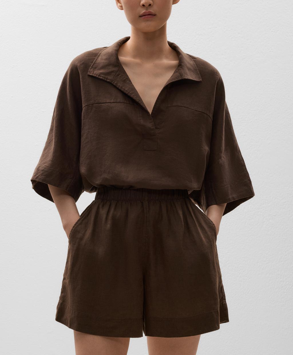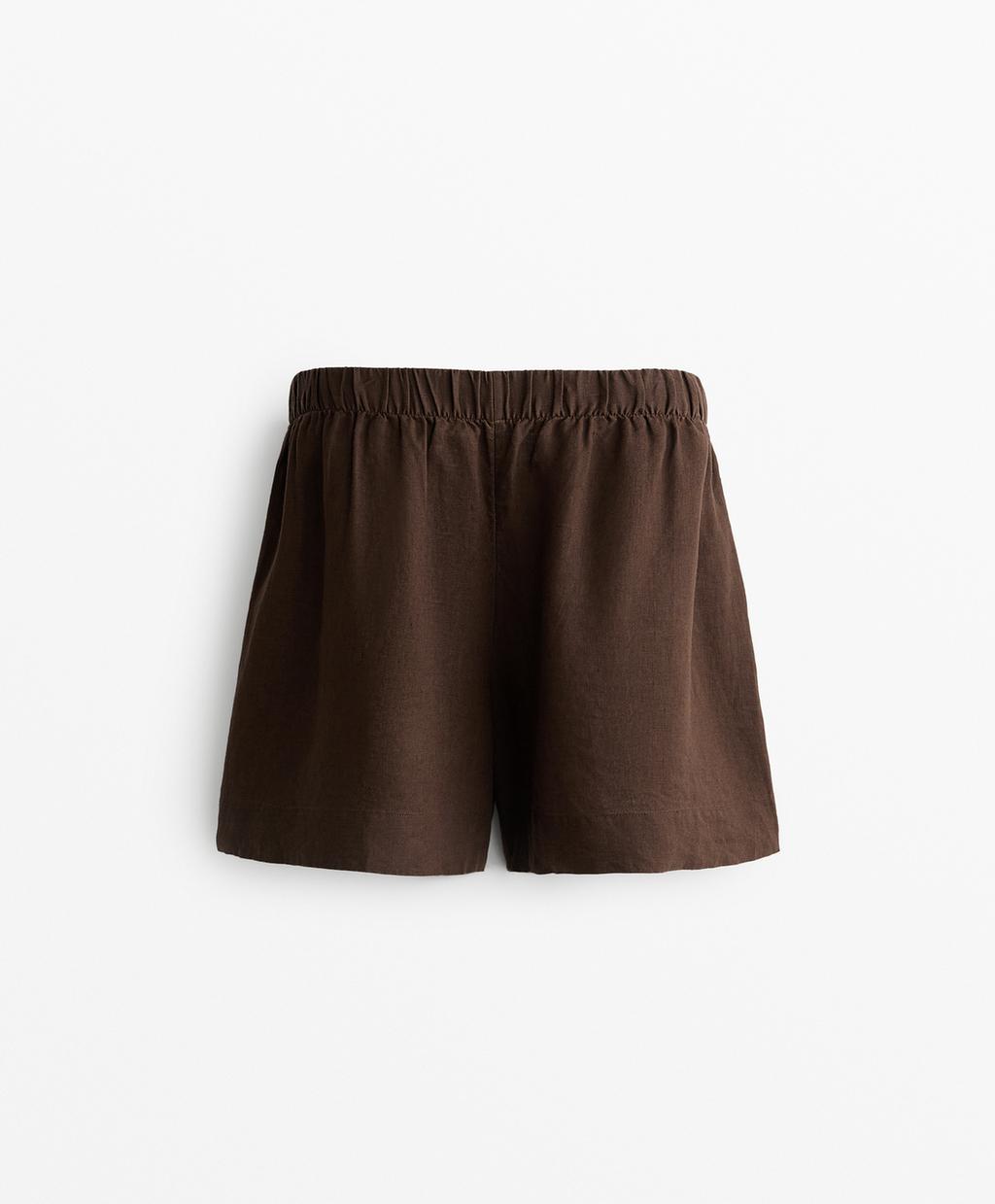 Шорты-бермуды из 100% льна Oysho, темно-коричневый 6 332₽