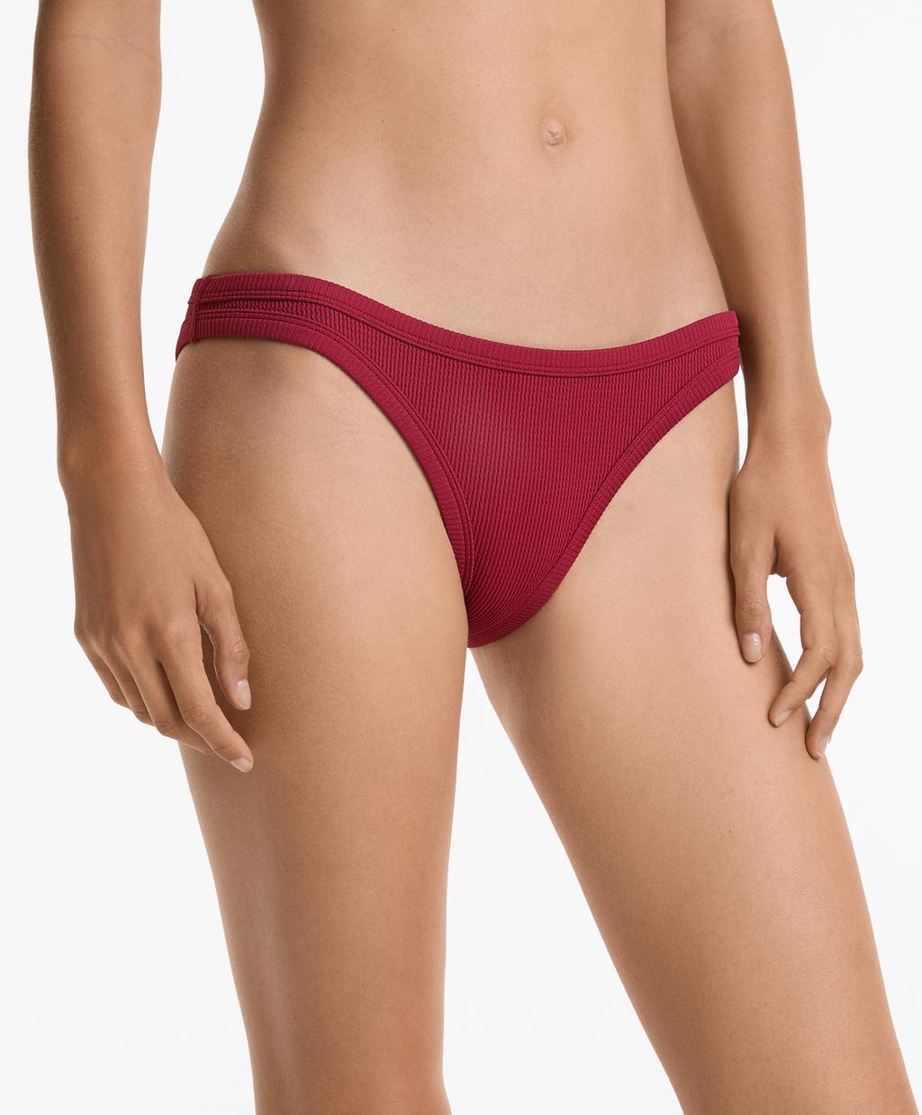 Трусы-бикини средней плотности с U-образным вырезом в рубчик Oysho, цвет Raspberry 2 182₽