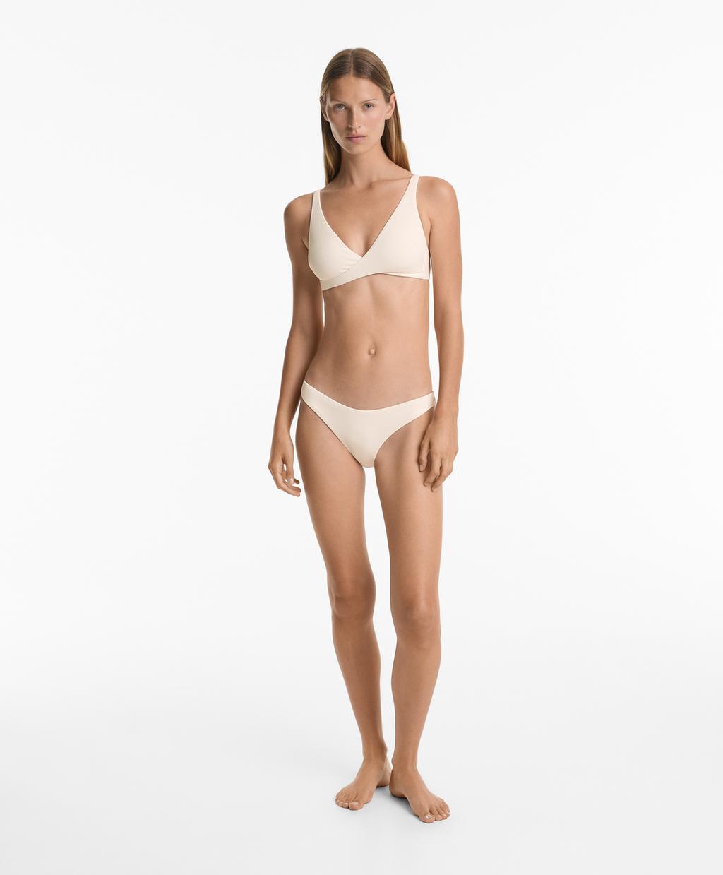 Пикейные трусики-бикини с U-образным вырезом средней плотности Oysho, бледный экрю 2 028₽