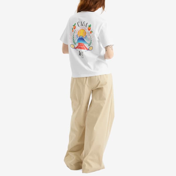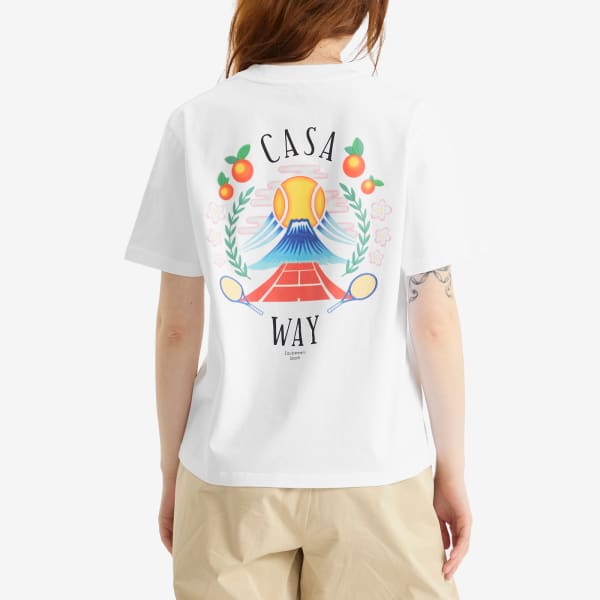 Смелая и яркая футболка Casa Way Mountain от Casablanca переосмысливает фирменную графику для нового сезона. Изготовленная из органического хлопка, эта выдающаяся футболка сочетает в себе роскошную спортивную эстетику бренда с японской иконографией — яркий намек на то, что будет в сезоне AW25.