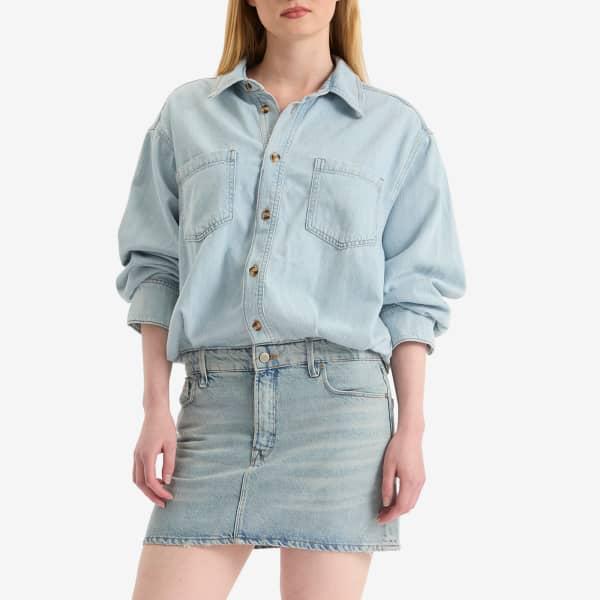 От культового бренда Good American, позитивно относящегося к телу, появился этот инновационный взгляд на классический деним. Сочетание винтажной стирки с современным пошивом, это платье представляет собой гибрид джинсовой рубашки и юбки, в котором есть все, что вам нравится в обеих моделях, в одном. Непринужденное, но изысканное, оно выводит ваш стиль на новый уровень.