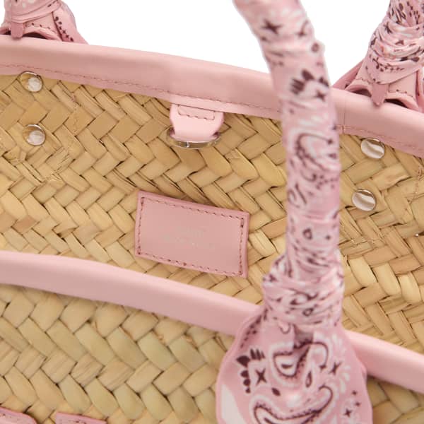 Ощутите непринужденную роскошь с помощью микросумки AMIRI из рафии. Изготовленная из натуральной рафии, она дополнена нежно-розовой кожаной отделкой и ручками с узором пейсли для придания богемного оттенка. Украшенная фирменным логотипом MA, она станет идеальным аксессуаром для солнечных дней.