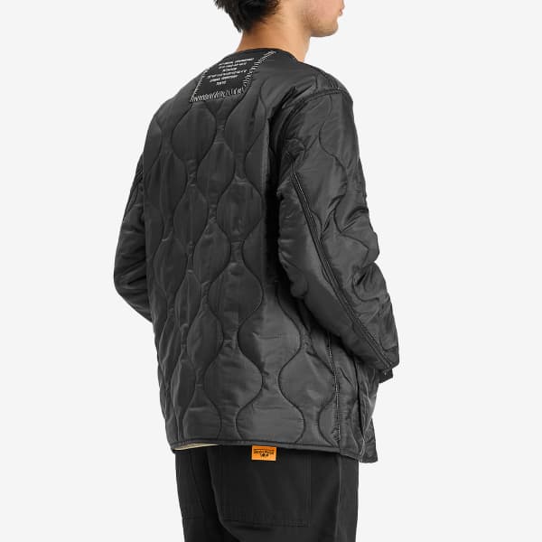 Идеальная легкая многослойная куртка WTAPS Liner Jacket изготовлена из нейлоновой ткани рипстоп с винтажным ощущением и блеском. Характеризуется силуэтом без воротника, на заднем воротнике вручную пришита нашивка с напечатанным мотивом.