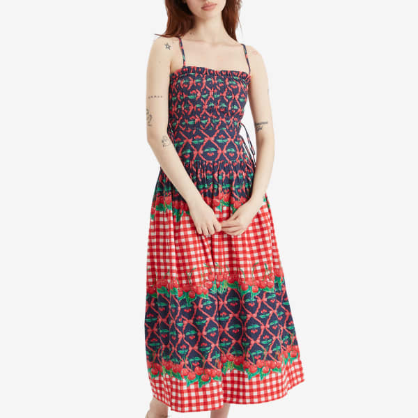 Damson Madder родилась из любви к захватывающим дизайнам, созданным ответственно, предлагая вам вещи, которые не только хорошо выглядят, но и хорошо ощущаются. Платье Kelia Midi выполнено из органического хлопка и дополнено очень милым узором вишни и гинема, который просто кричит о лете.