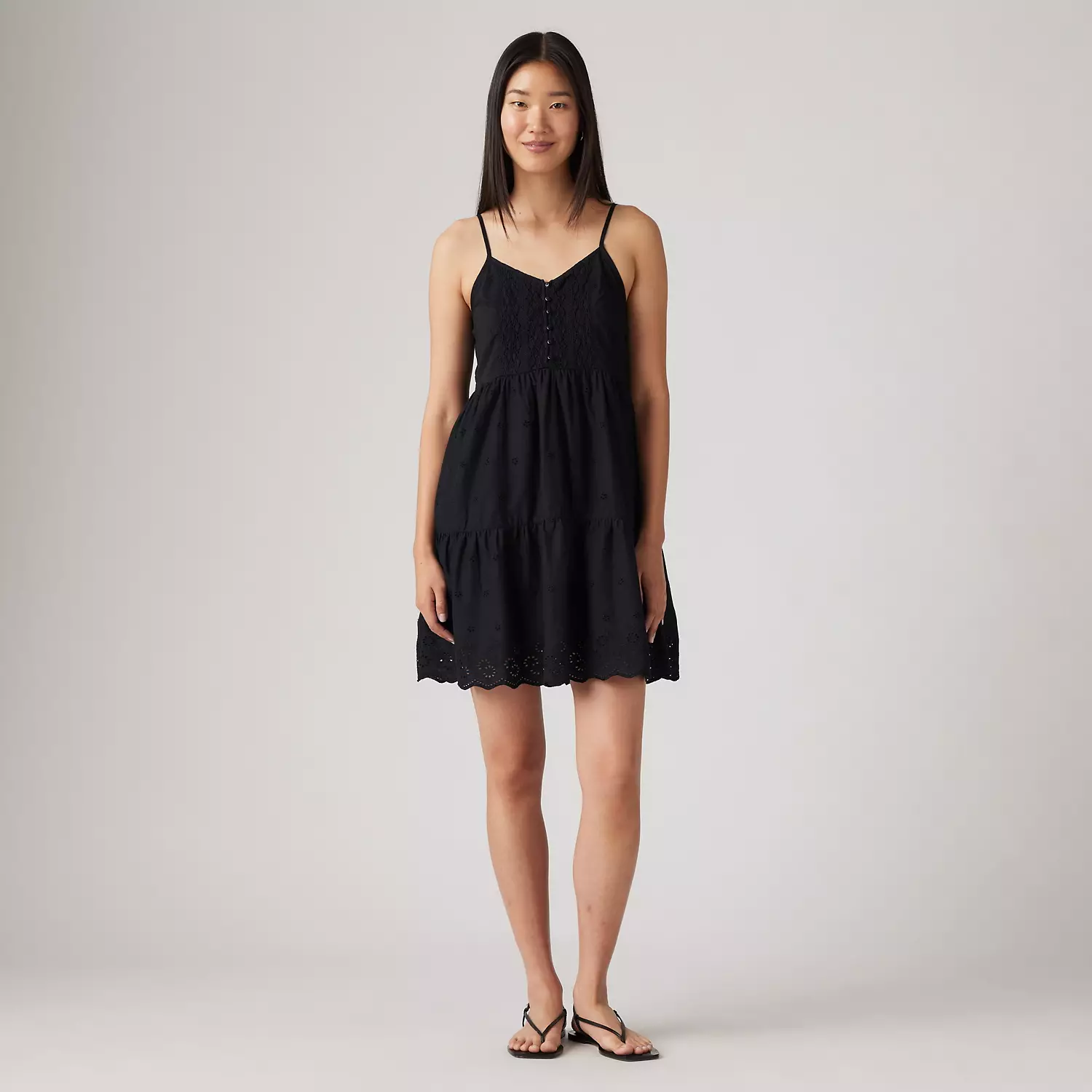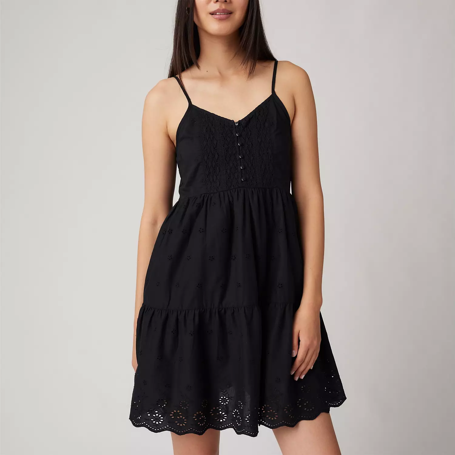 Идеальный партнер для теплых дней. Наше мини-платье Cora обладает регулировочными бретельками, силуэтом бэби-долл и красивыми отверстиями с узорами.