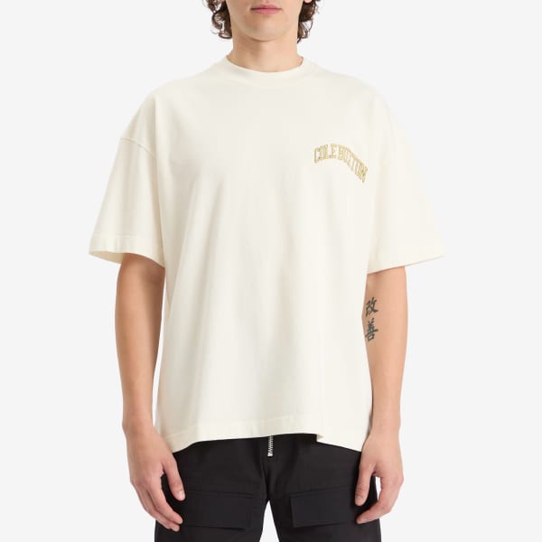 Часть нового выпуска SS25, Cole Buxton использует графику в стиле Лиги Плюща, чтобы вплести студенческое влияние во всю коллекцию - как на футболке Yellow Arc. Изготовленная из хлопкового джерси плотностью 280 г/м2, эта футболка была обработана и выстирана для более мягкого ощущения на ощупь и более «ношеного» вида - что делает ее идеальной для повседневной носки.