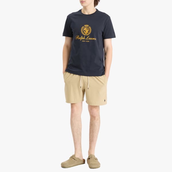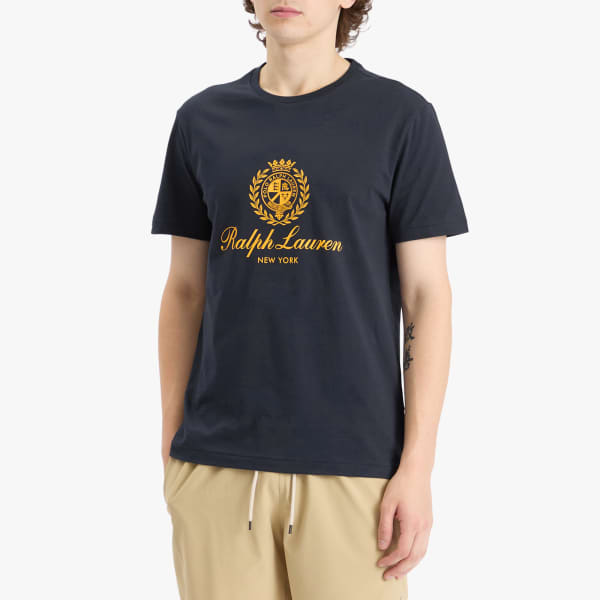Футболка с логотипом Polo Ralph Lauren имеет замысловато вышитый герб на груди, символ богатого наследия бренда. Графика сочетает в себе классические элементы, такие как щит, лавровый венок и культовый брендинг Polo, добавляя возвышенный, фирменный штрих этой мягкой хлопковой футболке.