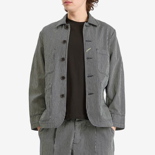 Universal Works возрождает историческую рабочую одежду с помощью оригинальной куртки Bakers Jacket в полоску hickory Stripe — культовый силуэт, переосмысленный в текстурированном дениме цвета индиго. Свободный крой для легкого наложения слоев, фирменная угловая петля и изысканная отделка стежками сочетают в себе вневременную практичность с современным мастерством для повседневного характера и функциональности.