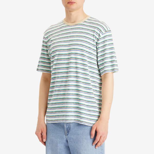 Футболка Folk multistripe привносит непринужденный характер в повседневную одежду. Свободный крой, богатые многоцветные полосы и мягкий хлопковый трикотаж добавляют текстуру и движение. Контрастный ребристый вырез горловины отсылает к винтажному спортивному стилю, а двойная строчка сохраняет чистоту и долговечность.