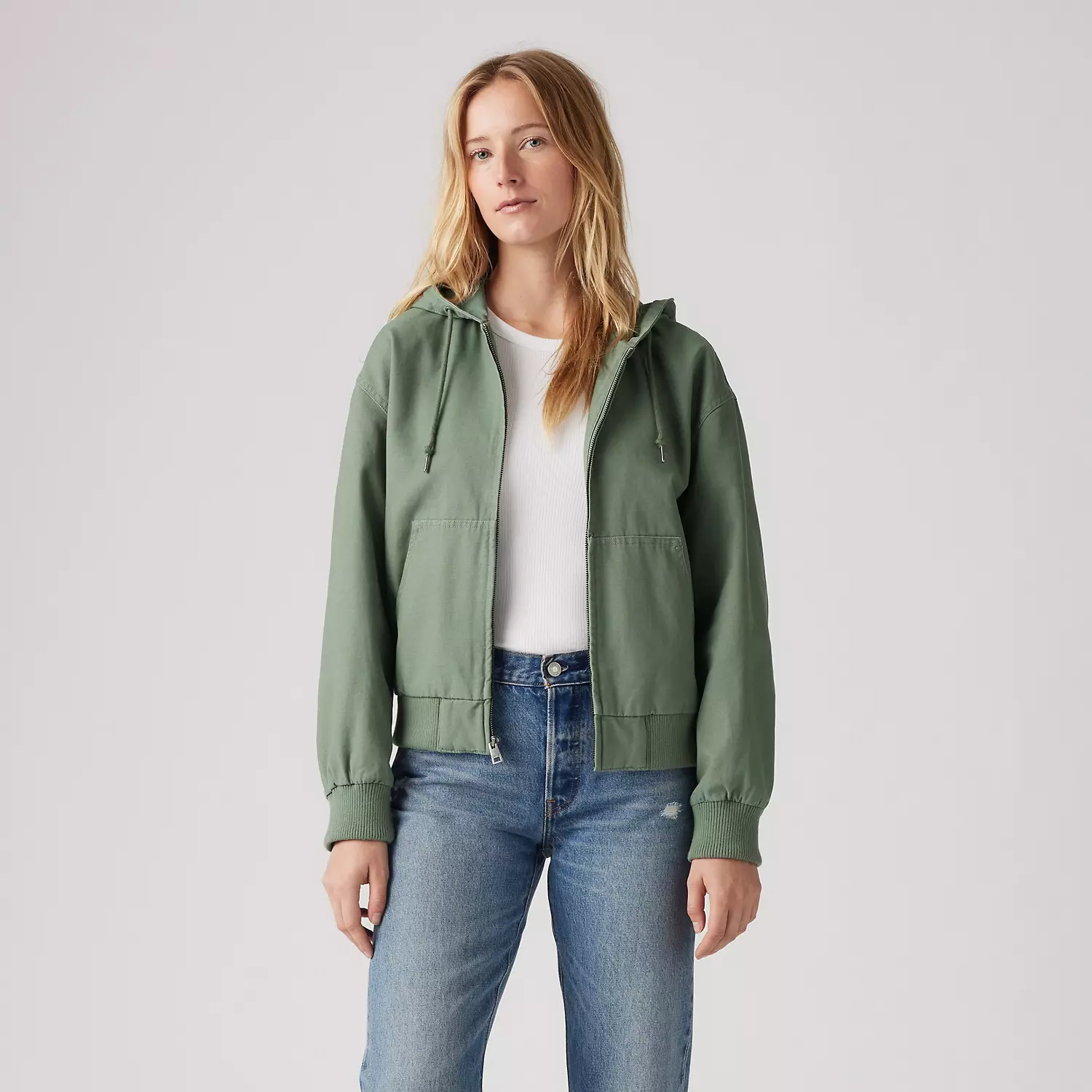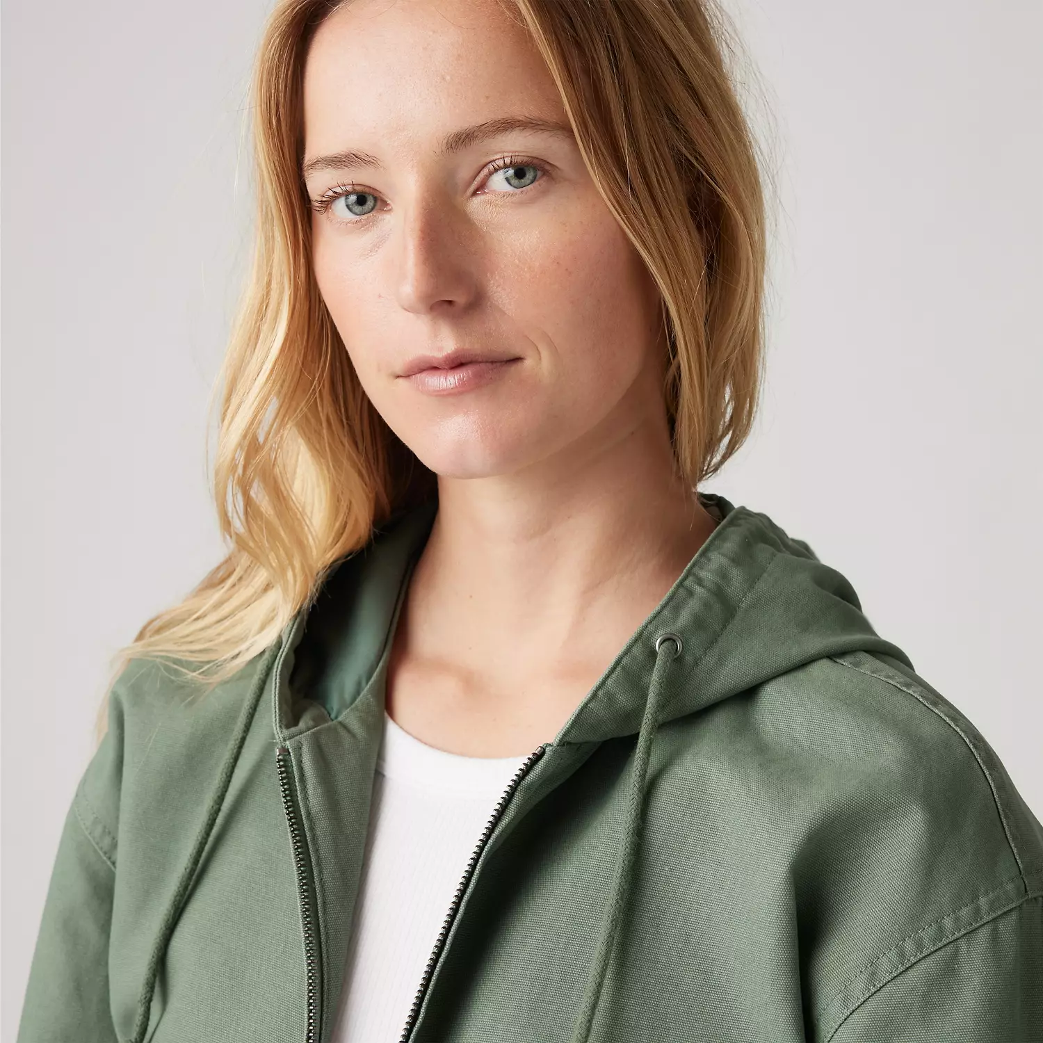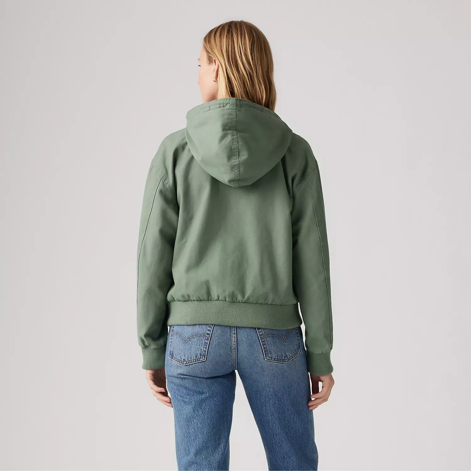 Этот хлопковый повседневный рабочий худи-бомбер effortlessly сочетает в себе комфорт и практичность, идеально подходит для тех, кому нужна универсальность в гардеробе. Мягкий хлопковый внешний слой обеспечивает расслабленный крой, в то время как манжеты и подол из резинки обеспечивают плотный и структурированный вид. Дизайн включает два нижних кармана для легкого хранения, а также капюшон с регулируемыми шнурками для дополнительной защиты от погодных условий. Будь то работа или повседневные выходы, этот худи-бомбер является идеальным выбором для комфортного и стильного повседневного образа.