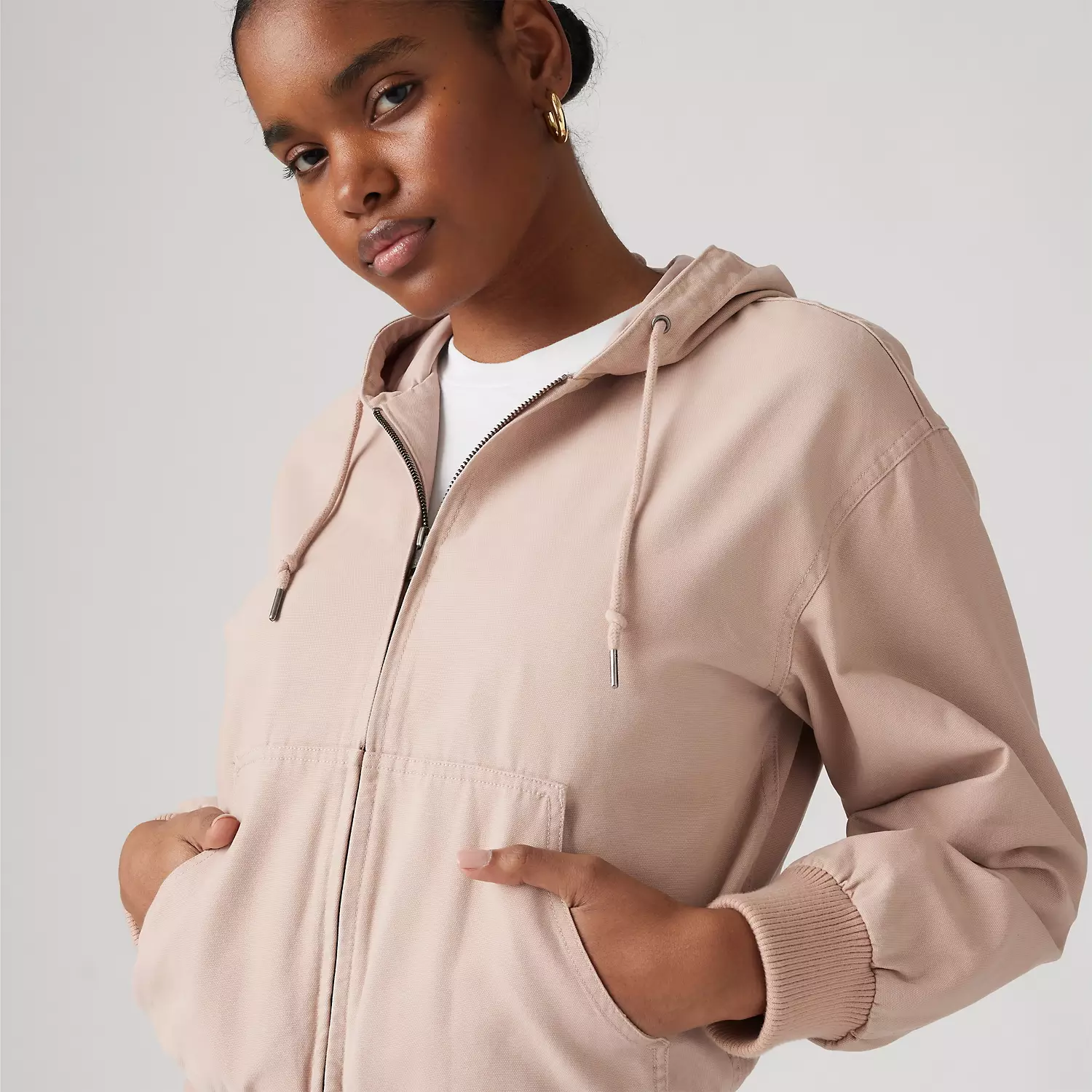 Этот хлопковый повседневный рабочий худи-бомбер effortlessly сочетает в себе комфорт и практичность, идеально подходит для тех, кому нужна универсальность в гардеробе. Мягкий хлопковый внешний слой обеспечивает расслабленный крой, в то время как манжеты и подол из резинки обеспечивают плотный и структурированный вид. Дизайн включает два нижних кармана для легкого хранения, а также капюшон с регулируемыми шнурками для дополнительной защиты от погодных условий. Будь то работа или повседневные выходы, этот худи-бомбер является идеальным выбором для комфортного и стильного повседневного образа.