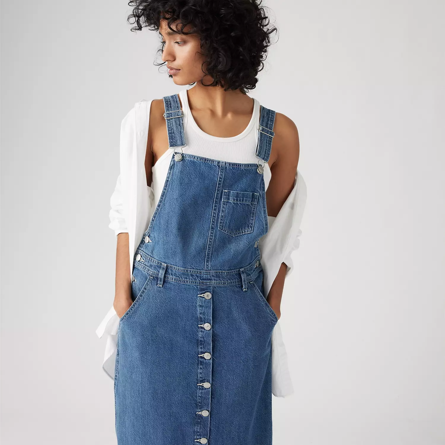 С платьем-джемпером Tico, вдохновленным винтажным стилем, вам будет легко одеваться и выходить на улицу — это мгновенная классика. Вдохновленное классическими комбинезонами, оно оснащено регулируемыми бретельками, 5 карманами для хранения ваших essentials, юбкой на пуговицах и красиво подчеркнутым силуэтом А-силуэта.