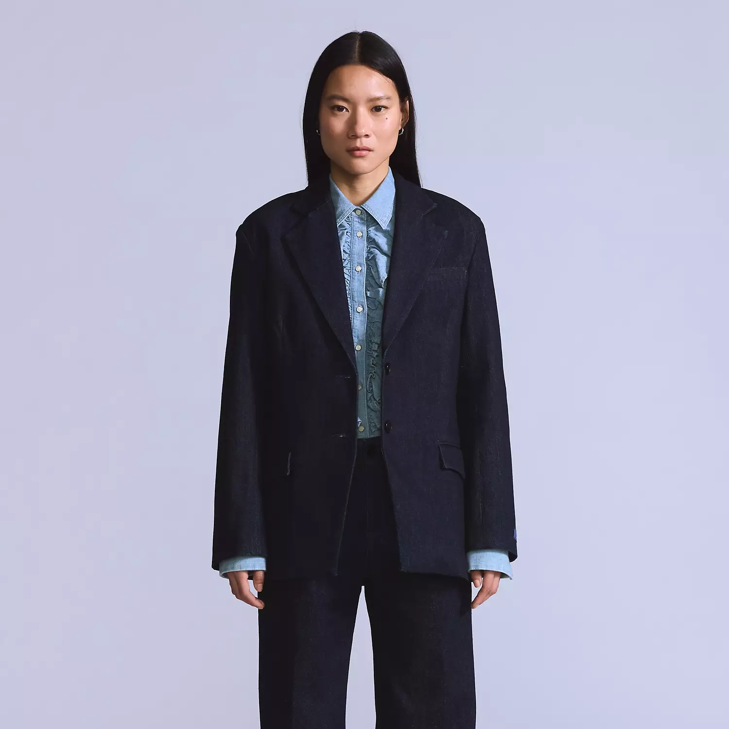 Пересмотренная классика, этот расслабленный блейзер поднимает планку с его мягкой, скроенной структурой, подкладкой из шамбре и идеально небрежным силуэтом.