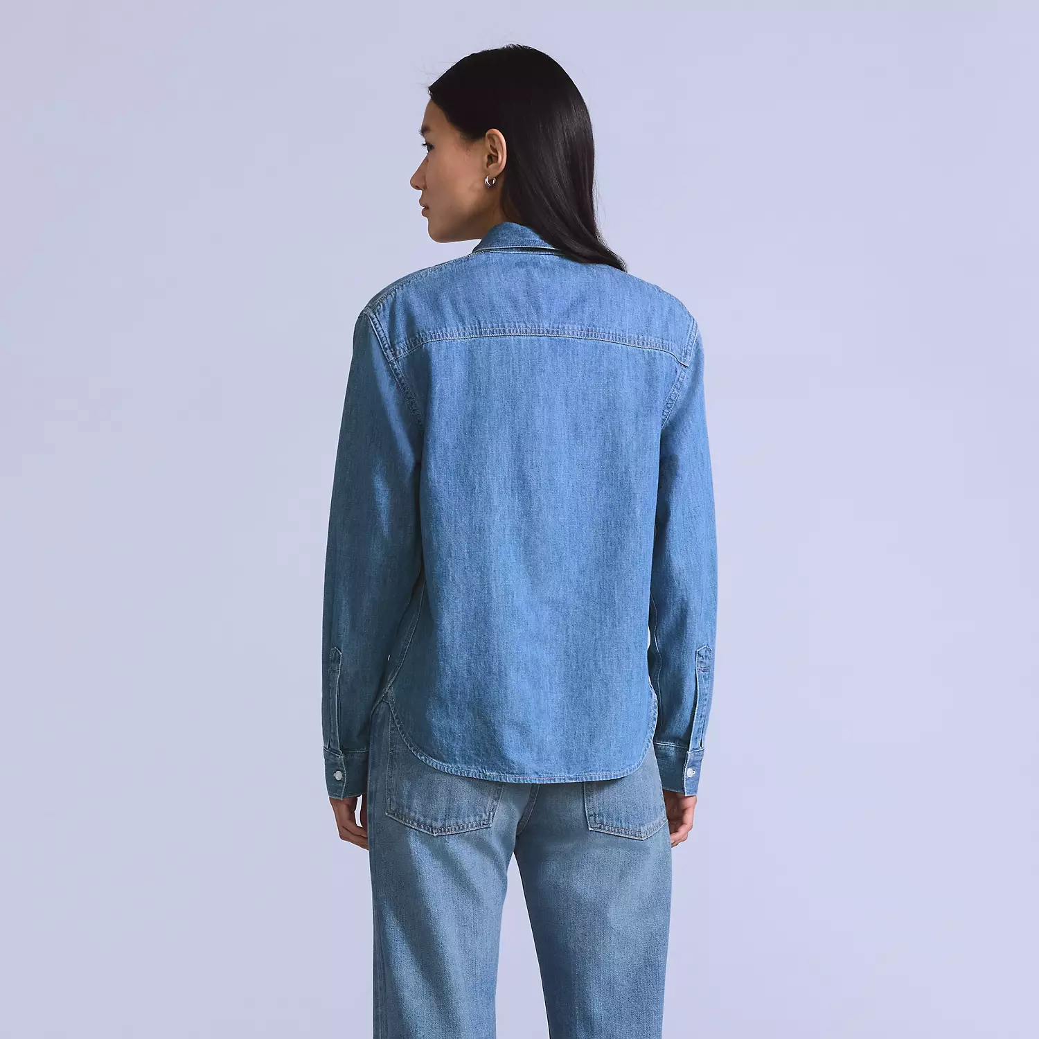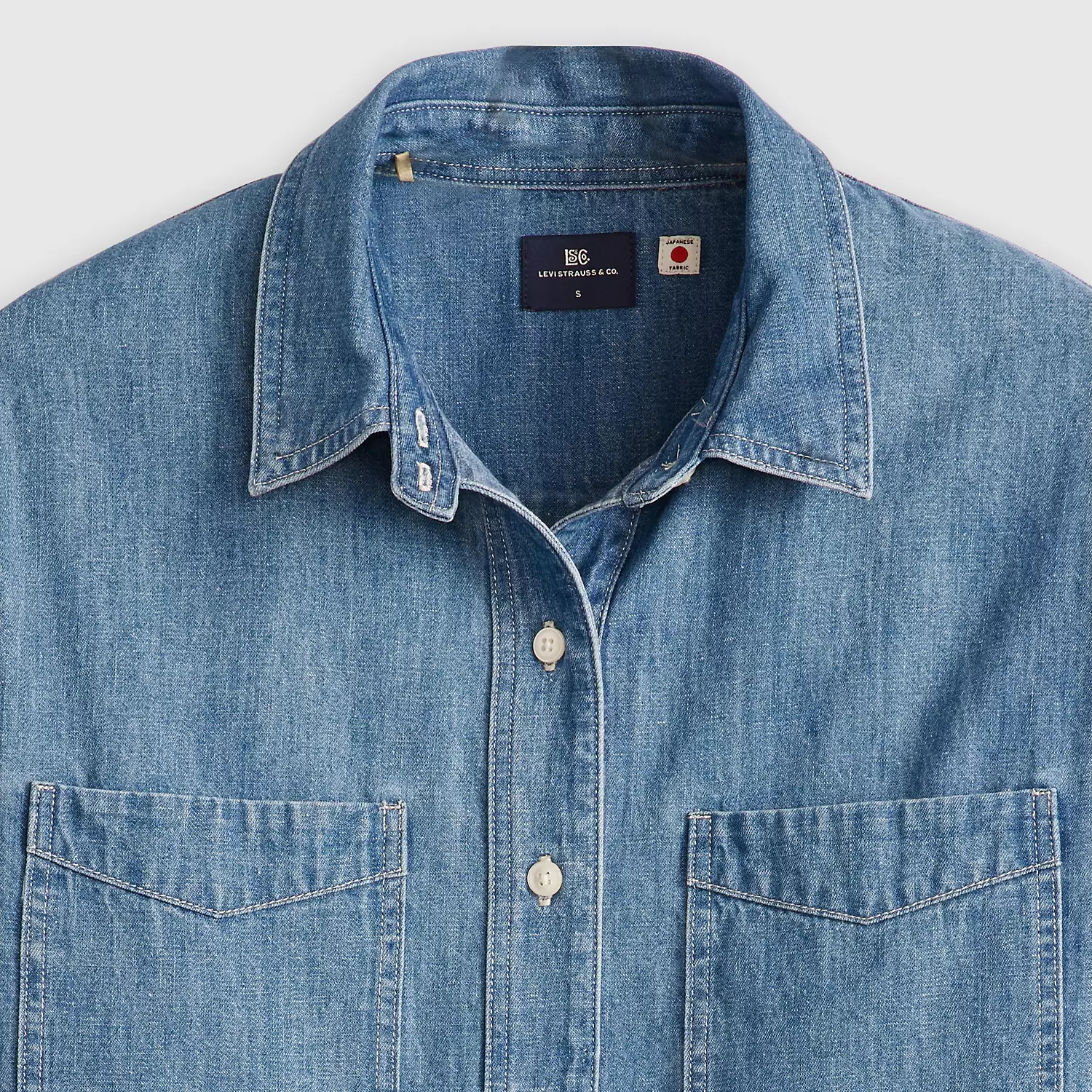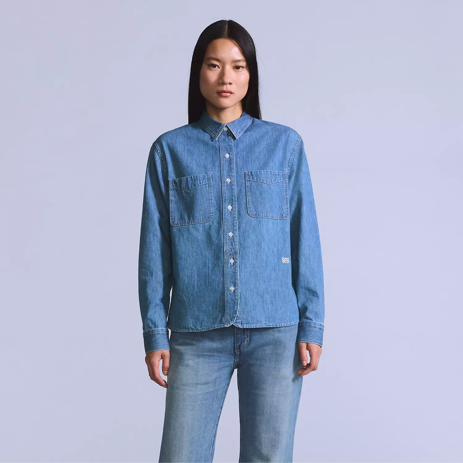 Утилитарная рубашка с идеальными пропорциями. Наша рубашка Denim Utility имеет свободный крой и отделку в стиле рабочей одежды, чтобы создать идеальный вариант с пуговицами.
