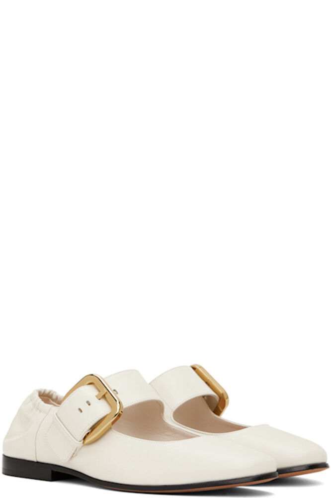 Балетки в стиле Мэри Джейн из зернистой телячьей кожи в кремовом цвете.