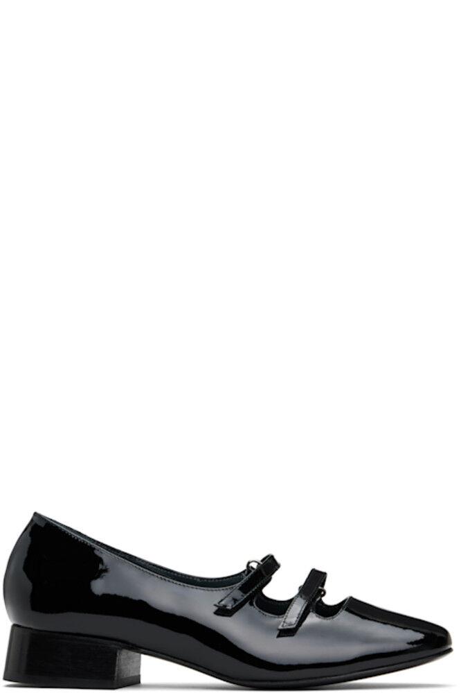 Балетки в стиле Мэри Джейн из лакированной кожи ручной работы черного цвета.