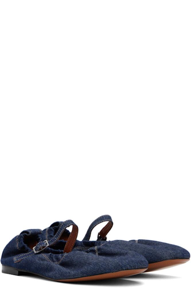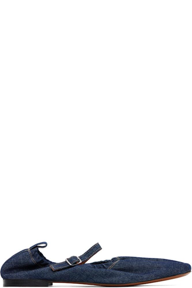Балетки в стиле Мэри Джейн из неэластичного денима синего цвета.