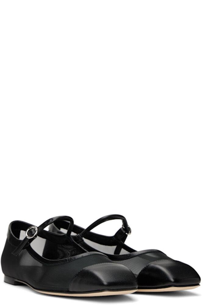 Балетки в стиле Мэри Джейн из полупрозрачной сетки и полированной кожи наппа черного цвета.